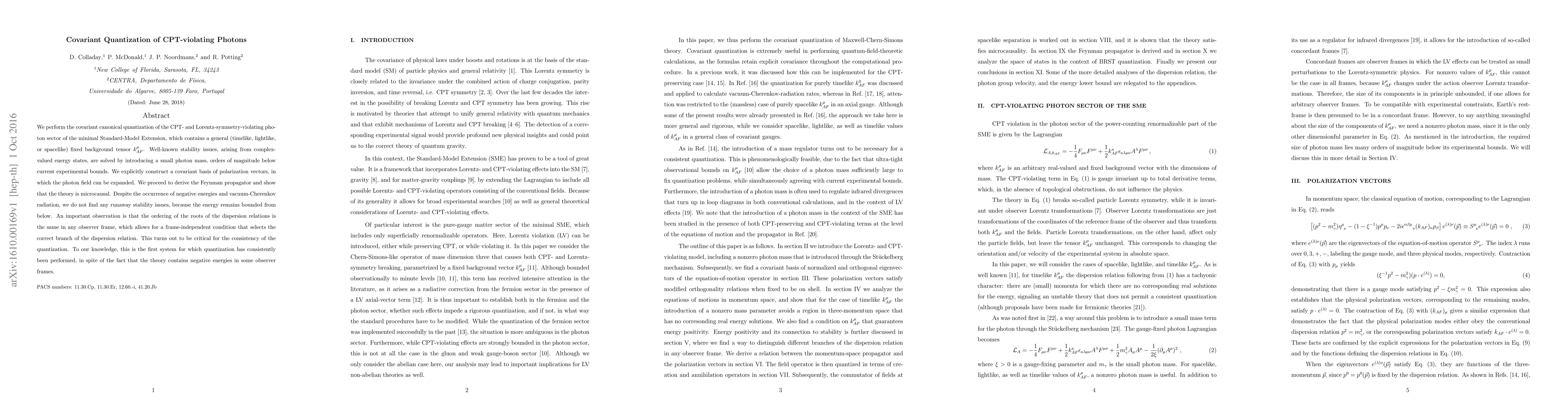 This paper quantizes a CPT- and Lorentz-symmetry-violating photon sector, introducing a small photon mass to resolve stability issues. It constructs a covariant basis, derives the Feynman propagator, and confirms microcausality, despite negative energies and vacuum-Cherenkov radiation, highlighting a frame-independent condition to maintain quantization consistency.