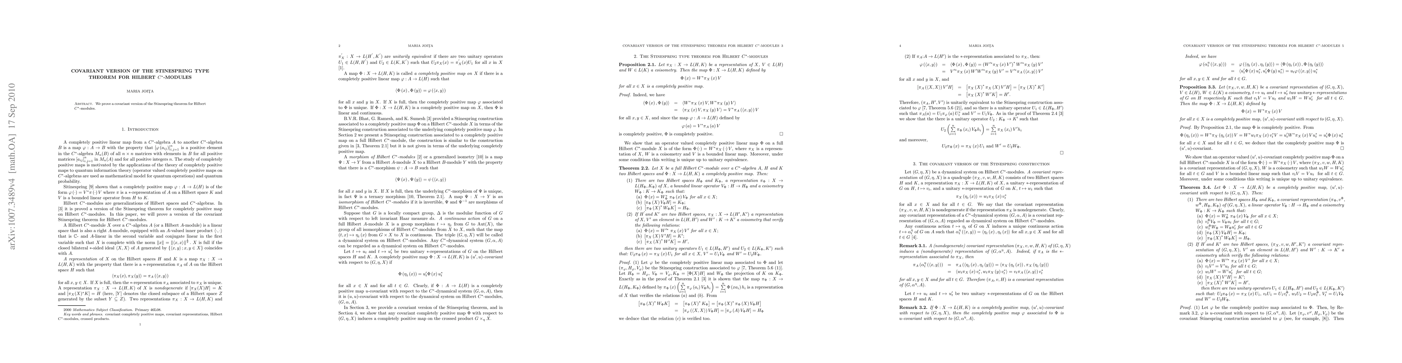 Researchers prove a covariant version of the Stinespring theorem for Hilbert C*-modules, extending its application to more complex mathematical structures.