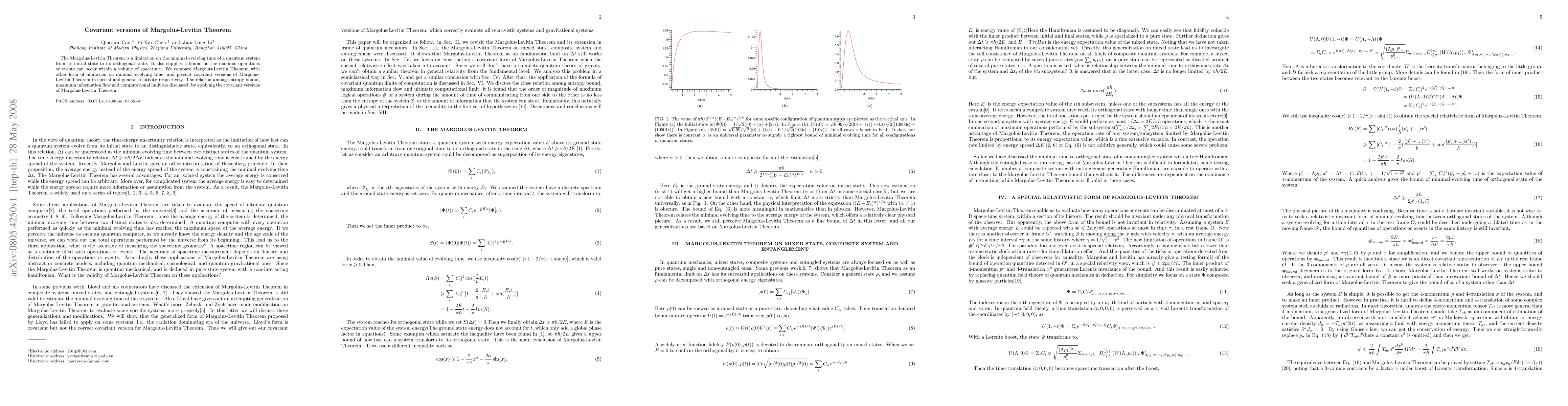 This paper presents covariant versions of the Margolus-Levitin Theorem in special and general relativity, comparing it with other time evolution limits. It discusses the relationship between entropy bounds, maximum information flow, and computational limits using these covariant formulations.