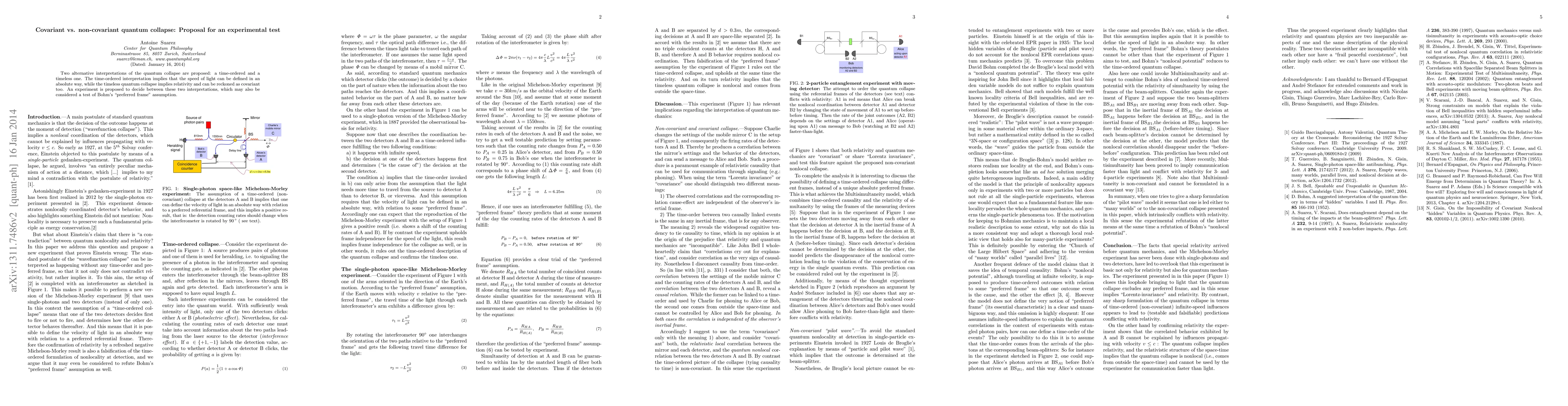 Two alternative interpretations of the quantum collapse are proposed: a time-ordered and a timeless one. The time-ordered interpretation implies that the speed of light can be defined in an absolute way, while the timeless quantum collapse implies relativity and can be reckoned as covariant too. An experiment is proposed to decide between these two interpretations, which may also be considered a test of Bohm's "preferred frame" assumption.