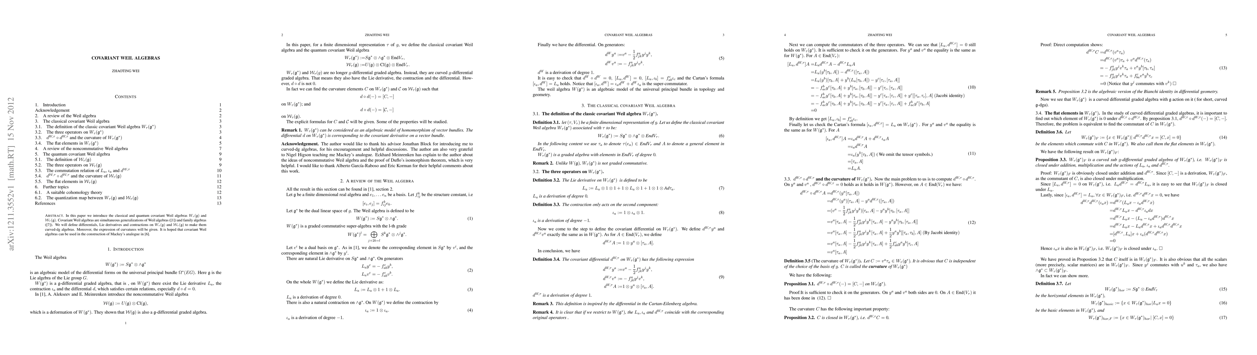 This paper introduces covariant Weil algebras as a generalization of Weil algebras and family algebras, defining differential, Lie derivative, and contraction operations to make them curved dg algebras with an expression for curvatures.