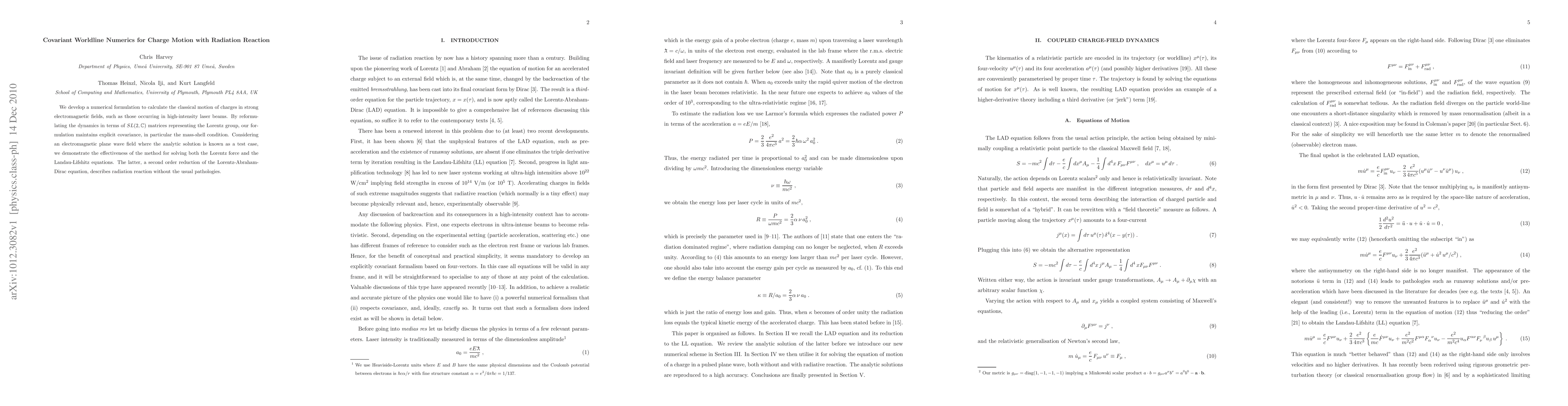 This paper presents a covariant numerical method for calculating the motion of charged particles in strong electromagnetic fields, using SL(2,C) matrices to maintain explicit covariance and the mass-shell condition. The method is tested for accuracy by solving the Landau-Lifshitz equations, which describe radiation reaction without typical issues.