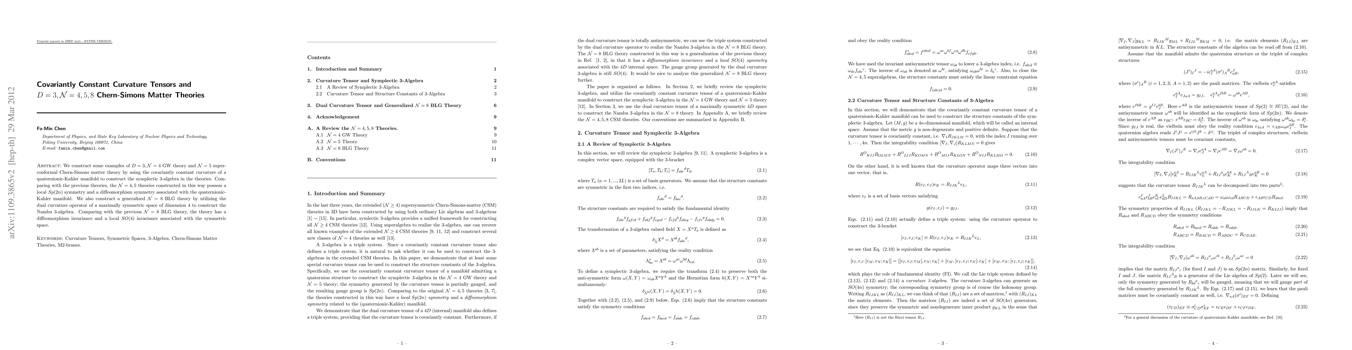 We construct some examples of D=3, N=4 GW theory and N=5 superconformal Chern-Simons matter theory by using the covariantly constant curvature of a quaternionic-Kahler manifold to construct the symplectic 3-algebra in the theories. Comparing with the previous theories, the N=4, 5 theories constructed in this way possess a local Sp(2n) symmetry and a diffeomorphism symmetry associated with the quaternionic-Kahler manifold. We also construct a generalized N=8 BLG theory by utilizing the dual curvature operator of a maximally symmetric space of dimension 4 to construct the Nambu 3-algebra. Comparing with the previous N=8 BLG theory, the theory has a diffeomorphism invariance and a local SO(4) invariance associated with the symmetric space.