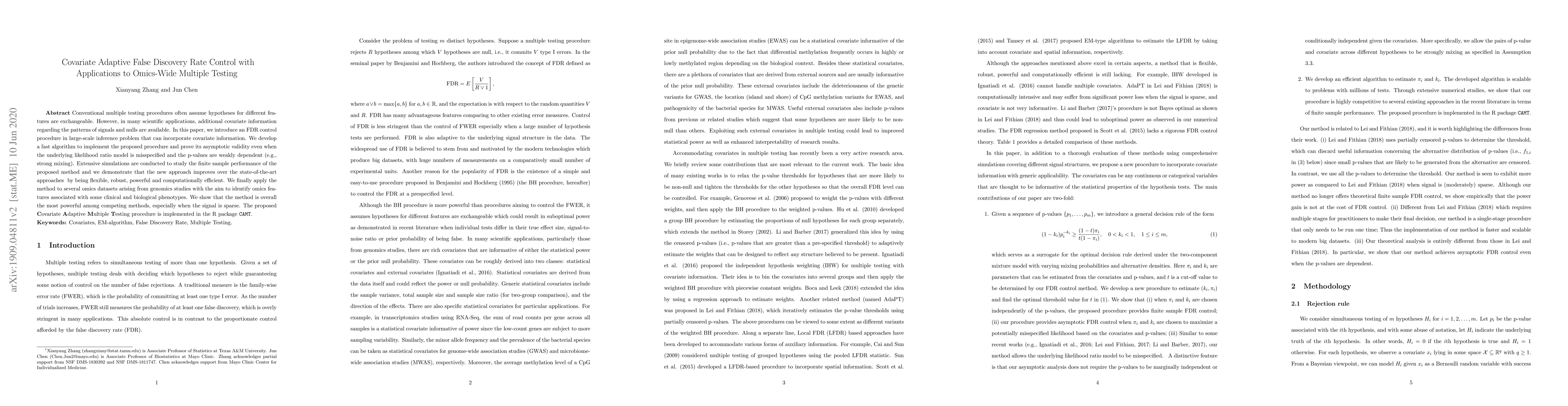 This paper introduces a covariate adaptive false discovery rate (FDR) control procedure for large-scale inference that incorporates additional covariate information to improve multiple testing. The proposed method is computationally efficient, robust, and outperforms existing approaches, especially in sparse signal settings, as demonstrated through simulations and applications to genomics datasets.
