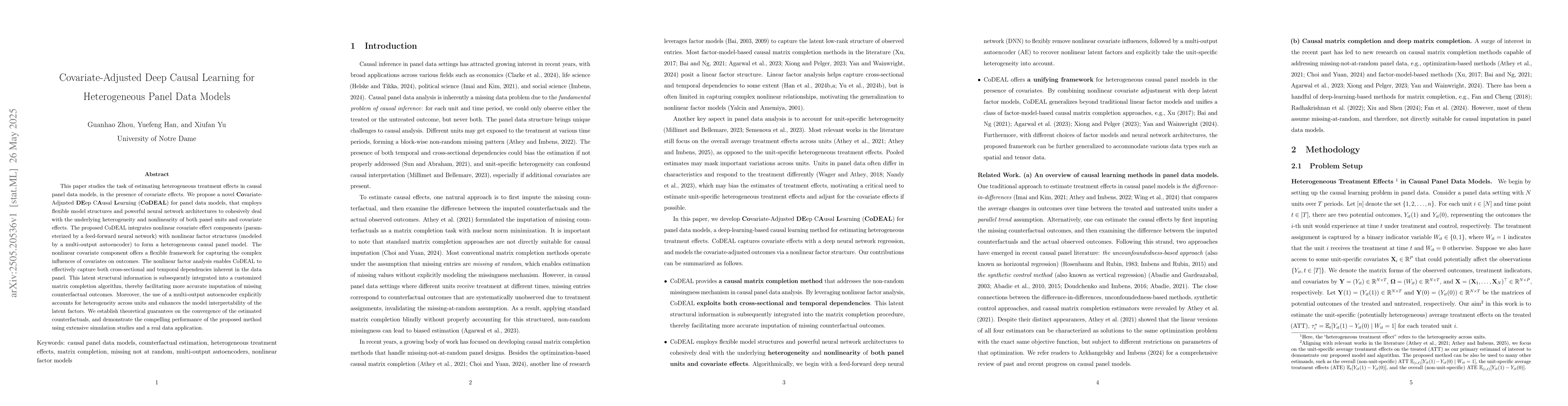 The research proposes Covariate-Adjusted Deep Causal Learning (CoDEAL) for heterogeneous panel data models, integrating nonlinear covariate effect components with nonlinear factor structures modeled by a multi-output autoencoder to capture heterogeneity and nonlinearity.