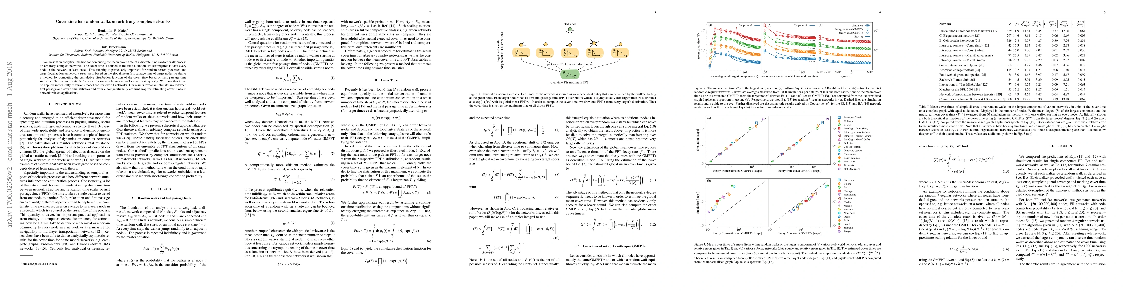 The paper introduces a novel analytical method for estimating cover times in complex networks, leveraging first passage time statistics and global mean first passage times.