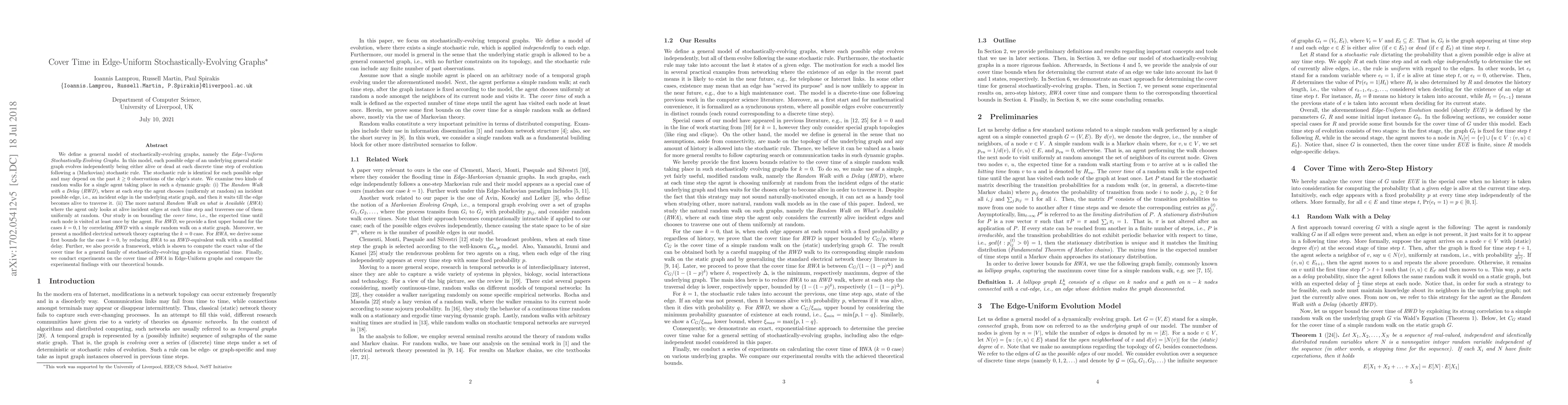 The Edge-Uniform Stochastically-Evolving Graphs model and the approach to bounding cover times for RWD and RWA, integrating random walk theory with electrical network analysis, represent a novel contribution to the study of dynamic graphs.