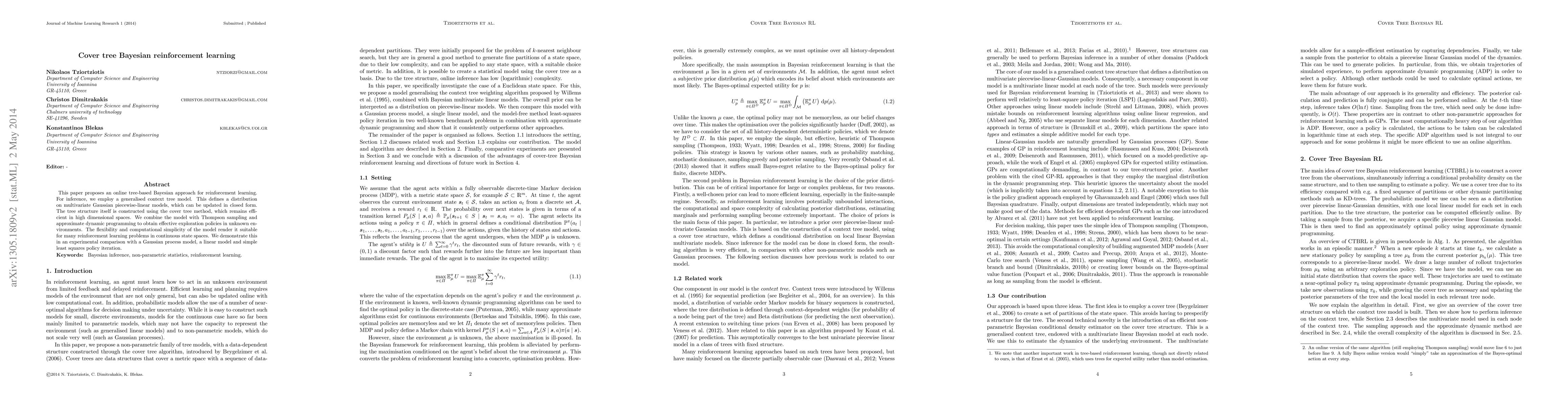 This paper proposes an online tree-based Bayesian approach for reinforcement learning. For inference, we employ a generalised context tree model. This defines a distribution on multivariate Gaussian piecewise-linear models, which can be updated in closed form. The tree structure itself is constructed using the cover tree method, which remains efficient in high dimensional spaces. We combine the model with Thompson sampling and approximate dynamic programming to obtain effective exploration policies in unknown environments. The flexibility and computational simplicity of the model render it suitable for many reinforcement learning problems in continuous state spaces. We demonstrate this in an experimental comparison with least squares policy iteration.