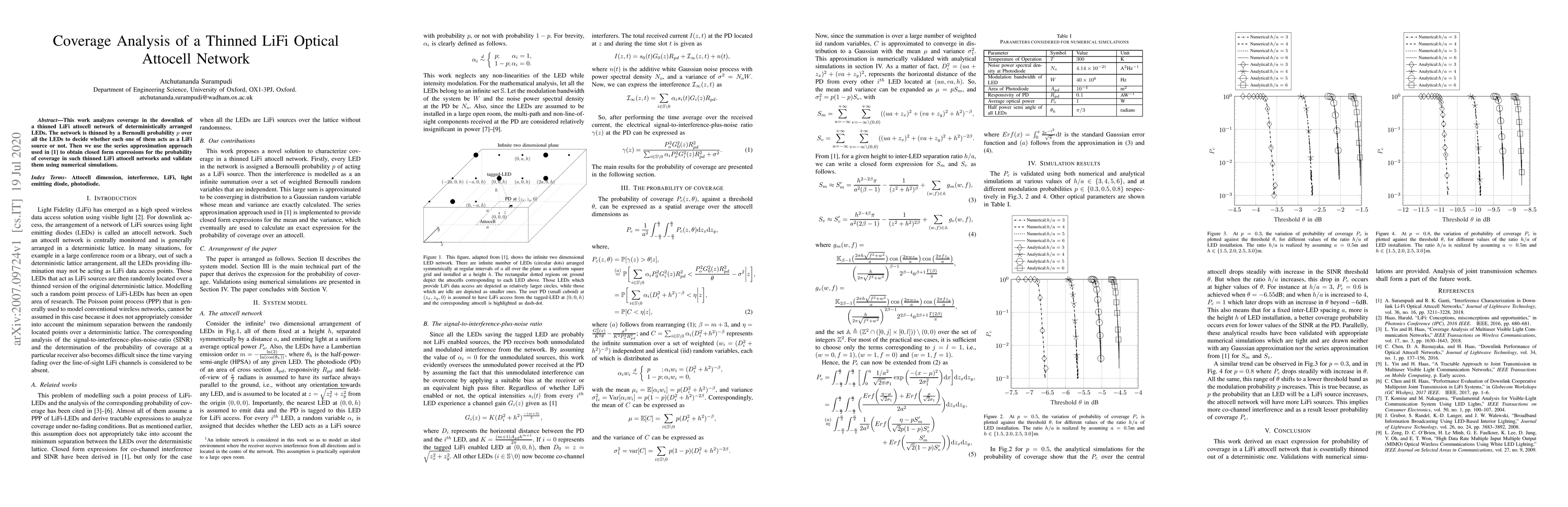 This paper investigates the coverage probability in a downlink thinned LiFi attocell network where LEDs are probabilistically activated. It derives closed-form expressions for coverage probability using a series approximation method and validates these through numerical simulations.