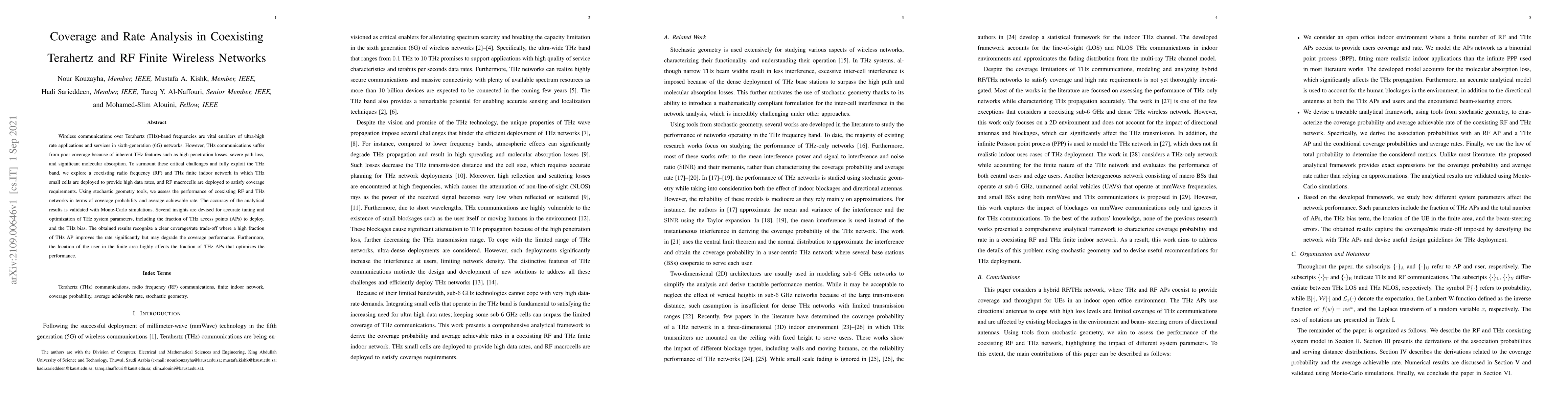 This paper investigates the coexistence of Terahertz (THz) and radio frequency (RF) networks to enhance 6G wireless communications, addressing THz's coverage limitations. It uses stochastic geometry to analyze coverage probability and average achievable rate, revealing a trade-off between coverage and rate influenced by the fraction of THz access points and user location.
