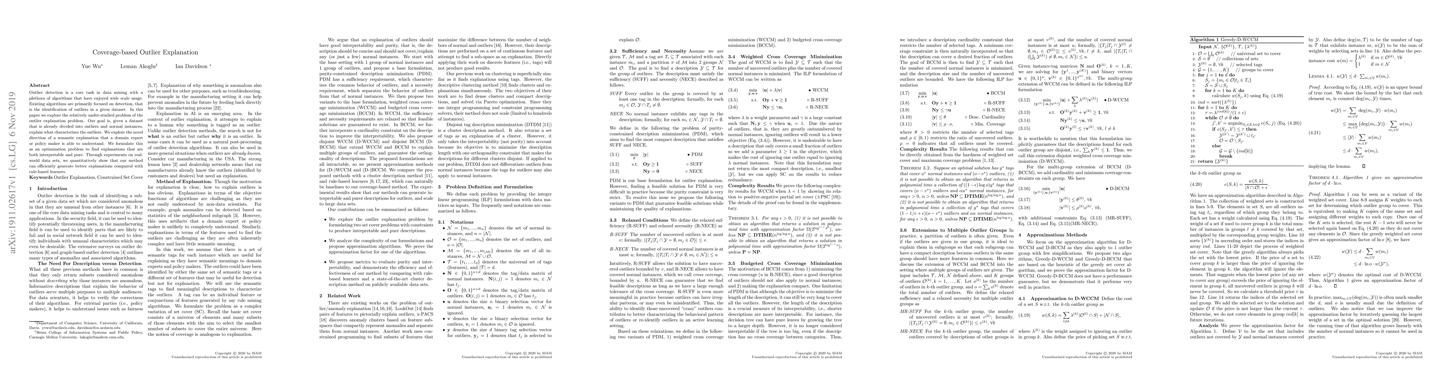 This paper addresses the under-explored outlier explanation problem, aiming to characterize outliers in a dataset with semantically interpretable explanations. It formulates the problem as an optimization task to generate pure, understandable explanations, demonstrating superior performance over rule-based learners through experiments on real-world datasets.