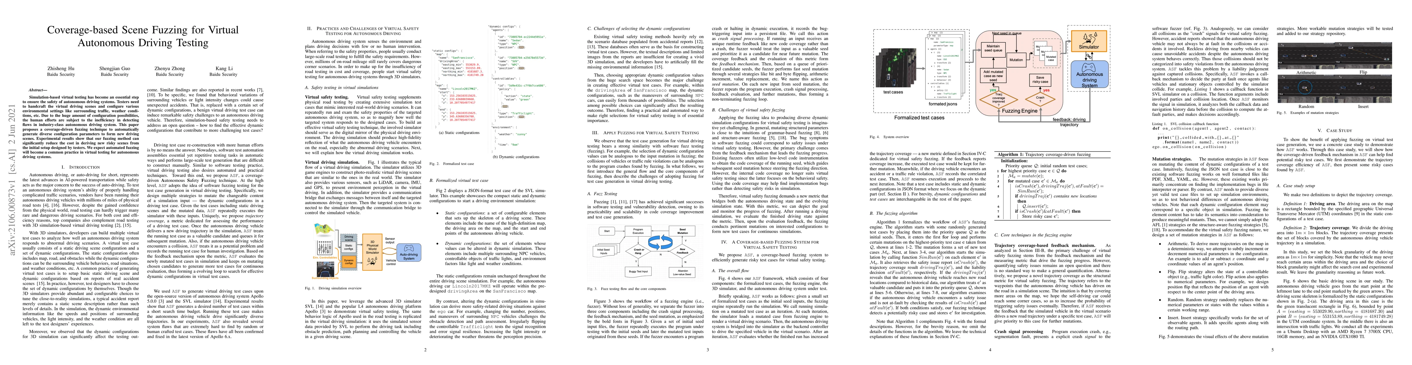 This paper introduces a coverage-driven fuzzing technique to automatically generate diverse configurations for virtual driving scenes, significantly reducing the manual effort required to detect flaws in autonomous driving systems. Experimental results demonstrate the effectiveness of the method in creating risky scenarios with lower human intervention.