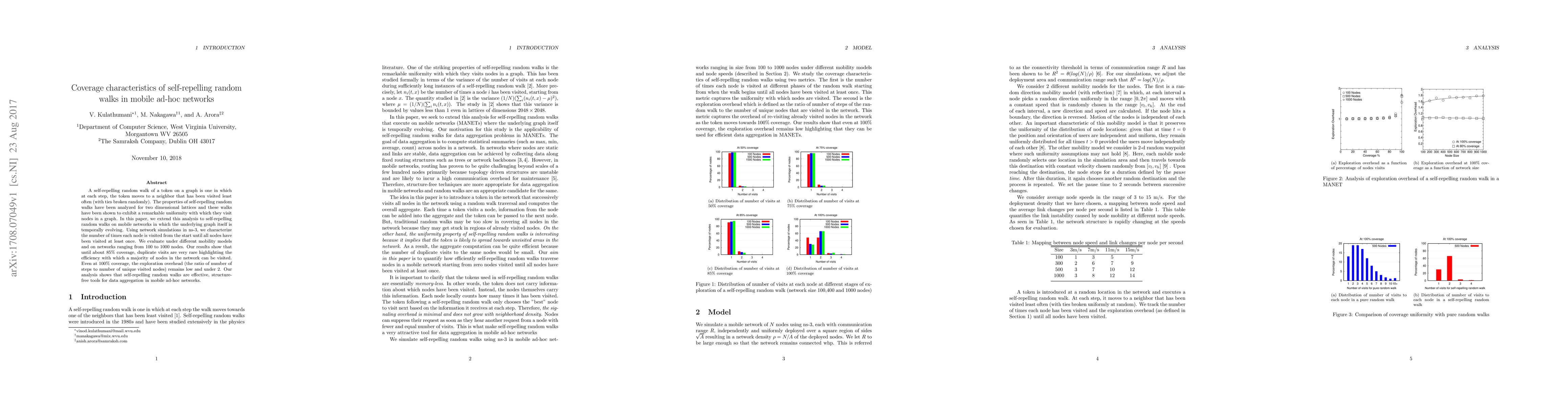 This paper analyzes self-repelling random walks in evolving mobile ad-hoc networks, showing that they efficiently visit nodes with minimal duplicate visits, achieving up to 85% coverage with low overhead. The study demonstrates the effectiveness of these walks for data aggregation in such networks.