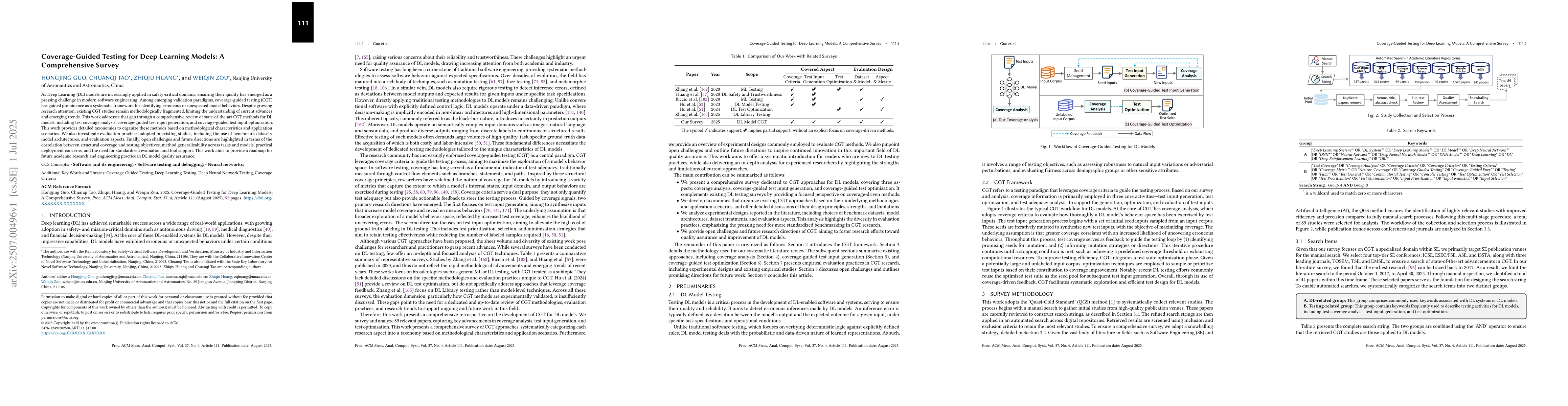 As Deep Learning (DL) models are increasingly applied in safety-critical domains, ensuring their quality has emerged as a pressing challenge in modern software engineering. Among emerging validation paradigms, coverage-guided testing (CGT) has gained prominence as a systematic framework for identifying erroneous or unexpected model behaviors. Despite growing research attention, existing CGT studies remain methodologically fragmented, limiting the understanding of current advances and emerging trends. This work addresses that gap through a comprehensive review of state-of-the-art CGT methods for DL models, including test coverage analysis, coverage-guided test input generation, and coverage-guided test input optimization. This work provides detailed taxonomies to organize these methods based on methodological characteristics and application scenarios. We also investigate evaluation practices adopted in existing studies, including the use of benchmark datasets, model architectures, and evaluation aspects. Finally, open challenges and future directions are highlighted in terms of the correlation between structural coverage and testing objectives, method generalizability across tasks and models, practical deployment concerns, and the need for standardized evaluation and tool support. This work aims to provide a roadmap for future academic research and engineering practice in DL model quality assurance.