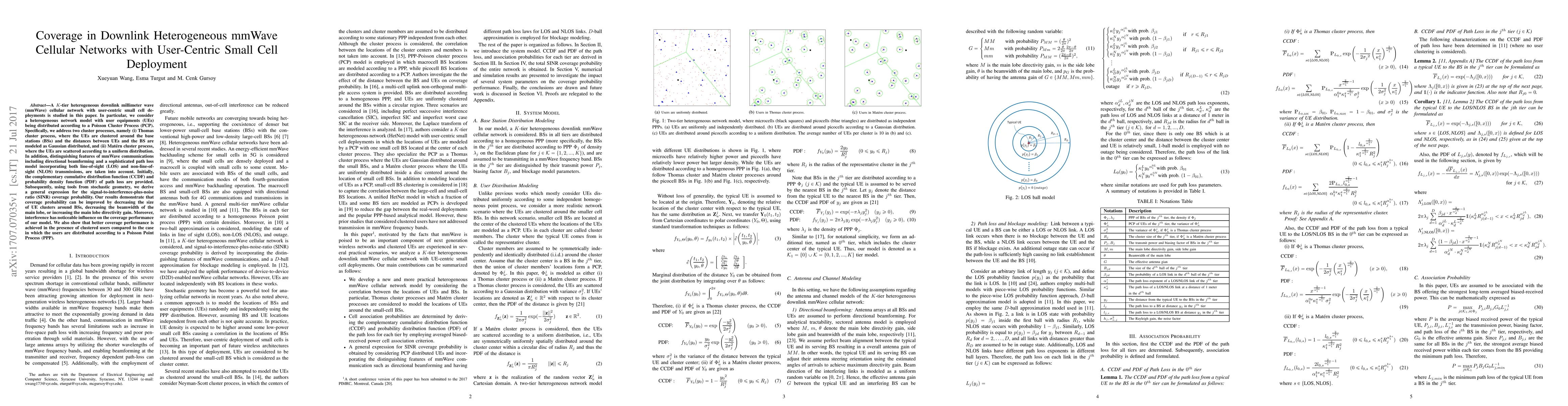 This paper investigates coverage in a K-tier heterogeneous mmWave network with user-centric small cell deployments, employing Poisson Cluster Processes for user distribution. It models directional beamforming and sophisticated path loss for both LOS and NLOS transmissions, deriving expressions for SINR coverage probability and showing that decreasing cluster size and beamwidth, or increasing directivity gain, improves coverage, with clustered users yielding better performance than Poisson-distributed users.