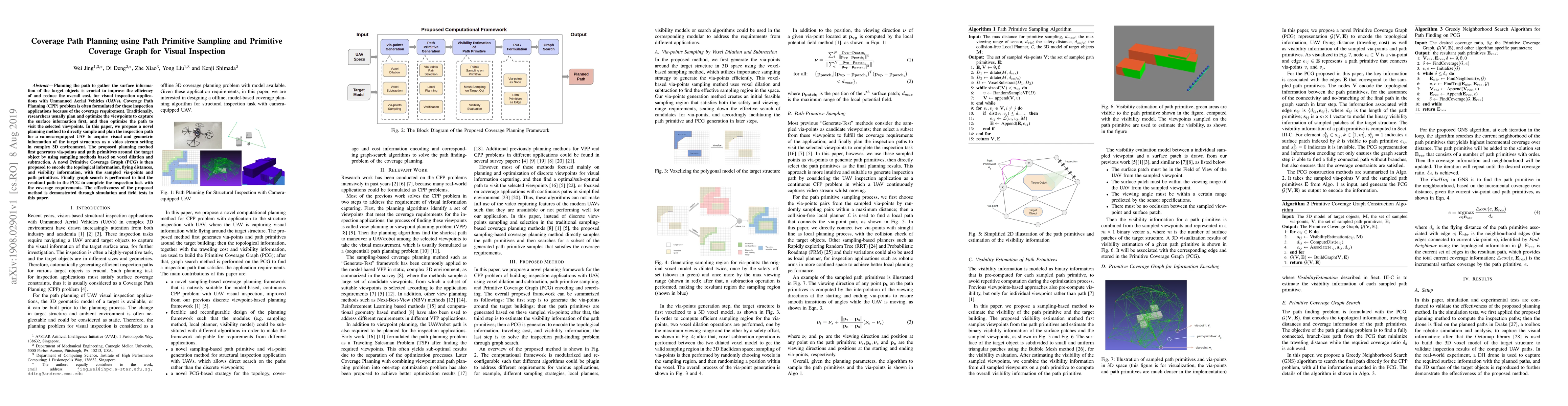 This paper proposes a novel Coverage Path Planning method for UAVs to efficiently gather visual inspection data by directly sampling and planning inspection paths. It utilizes a Primitive Coverage Graph to encode topological and visibility information, and graph search to determine optimal paths in complex 3D environments.