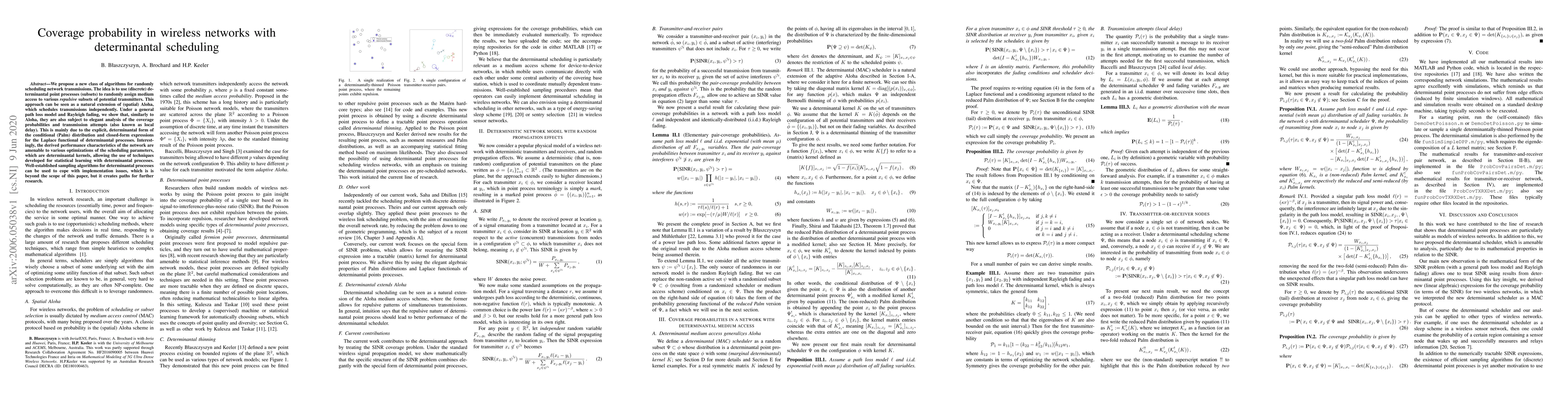 We propose a new class of algorithms for randomly scheduling network transmissions. The idea is to use (discrete) determinantal point processes (subsets) to randomly assign medium access to various {\em repulsive} subsets of potential transmitters. This approach can be seen as a natural extension of (spatial) Aloha, which schedules transmissions independently. Under a general path loss model and Rayleigh fading, we show that, similarly to Aloha, they are also subject to elegant analysis of the coverage probabilities and transmission attempts (also known as local delay). This is mainly due to the explicit, determinantal form of the conditional (Palm) distribution and closed-form expressions for the Laplace functional of determinantal processes. Interestingly, the derived performance characteristics of the network are amenable to various optimizations of the scheduling parameters, which are determinantal kernels, allowing the use of techniques developed for statistical learning with determinantal processes. Well-established sampling algorithms for determinantal processes can be used to cope with implementation issues, which is is beyond the scope of this paper, but it creates paths for further research.