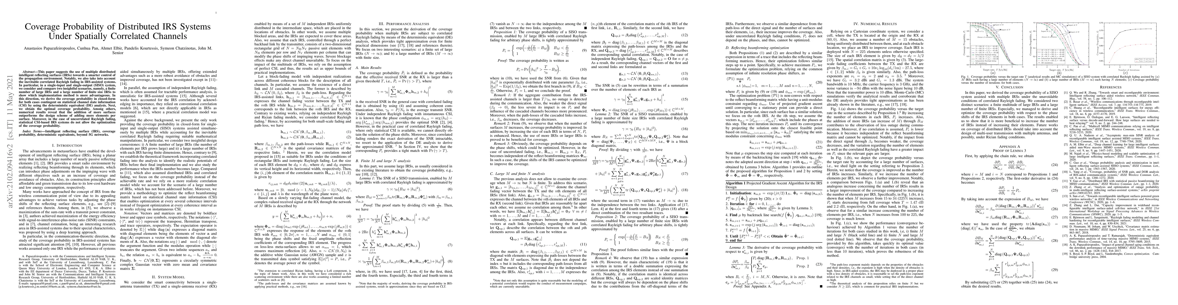 This paper evaluates the coverage probability of distributed intelligent reflecting surface (IRS) systems under correlated Rayleigh fading, comparing large IRSs versus numerous small IRSs. The study derives closed-form coverage probability using deterministic equivalent analysis and finds that more surfaces generally outperform designs with more elements per surface.