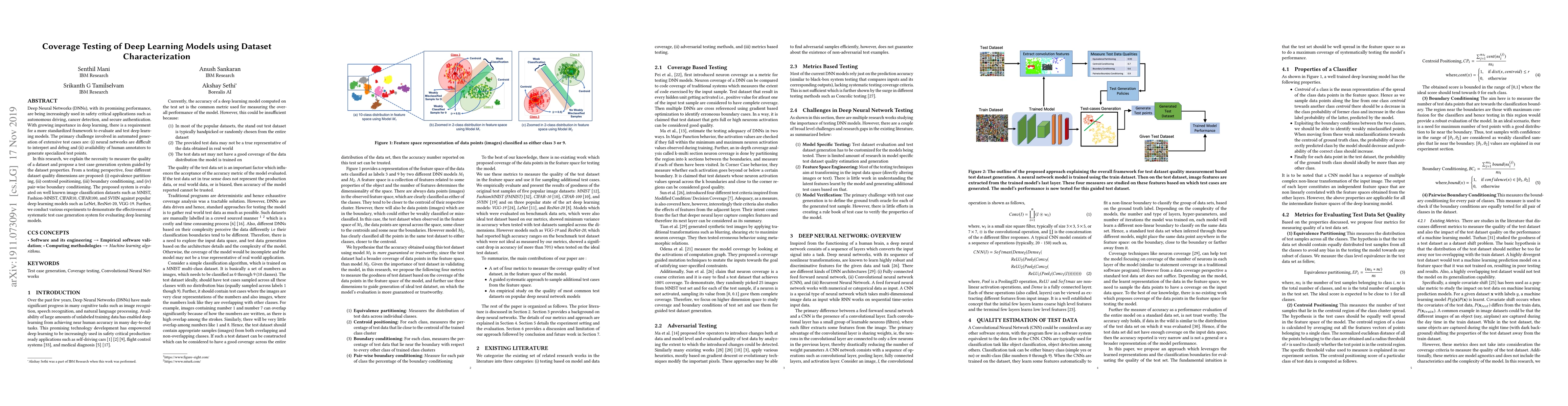 This paper proposes a framework for testing deep learning models by characterizing dataset properties to generate test cases, addressing challenges in interpretability and annotation. The framework introduces four dataset quality dimensions and is evaluated on multiple image classification datasets against various deep learning models, demonstrating its effectiveness.
