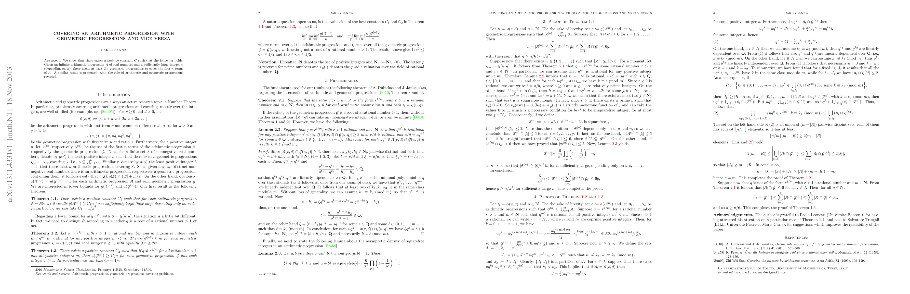 This paper demonstrates that covering an infinite arithmetic progression with geometric progressions requires at least a constant multiple of the number of terms times a positive constant C, and vice versa. The study establishes a lower bound for the number of geometric progressions needed to cover sufficiently large segments of arithmetic progressions.