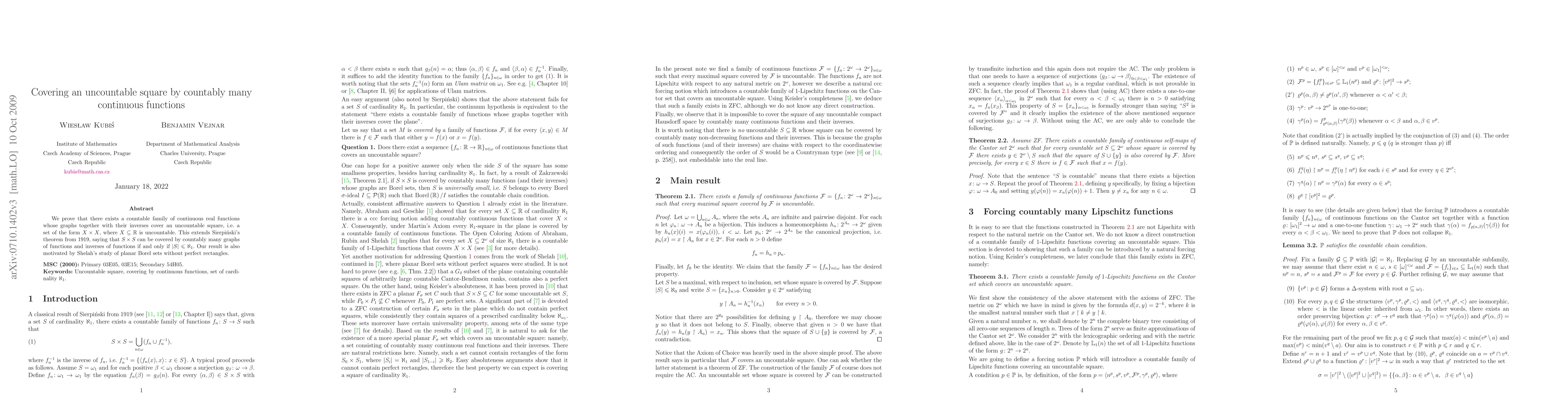 This paper proves the existence of a countable family of continuous functions whose graphs and inverses cover an uncountable square, extending Sierpiński's 1919 theorem and motivated by Shelah's work on planar Borel sets. This result challenges the size restriction on the set in Sierpiński's original theorem.