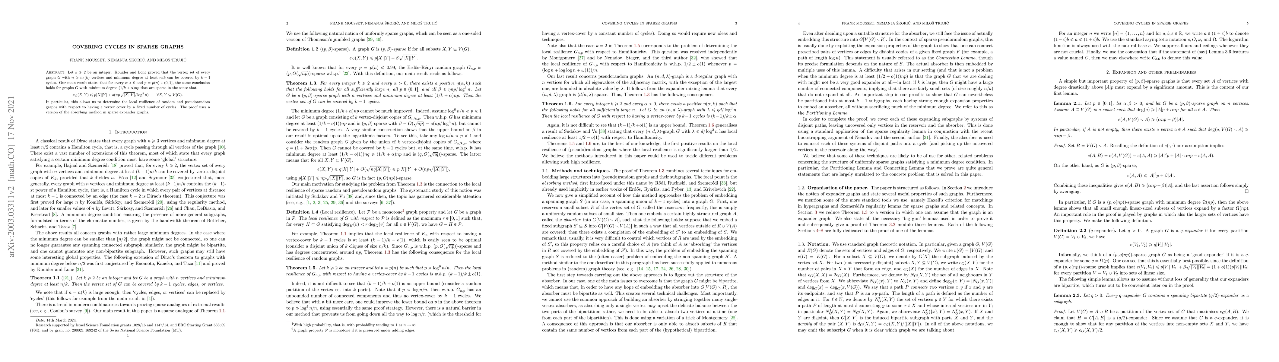 The paper's main technical contribution is the extension of cycle covering results to sparse graphs with a relaxed minimum degree condition, using an absorbing method in expander graphs.