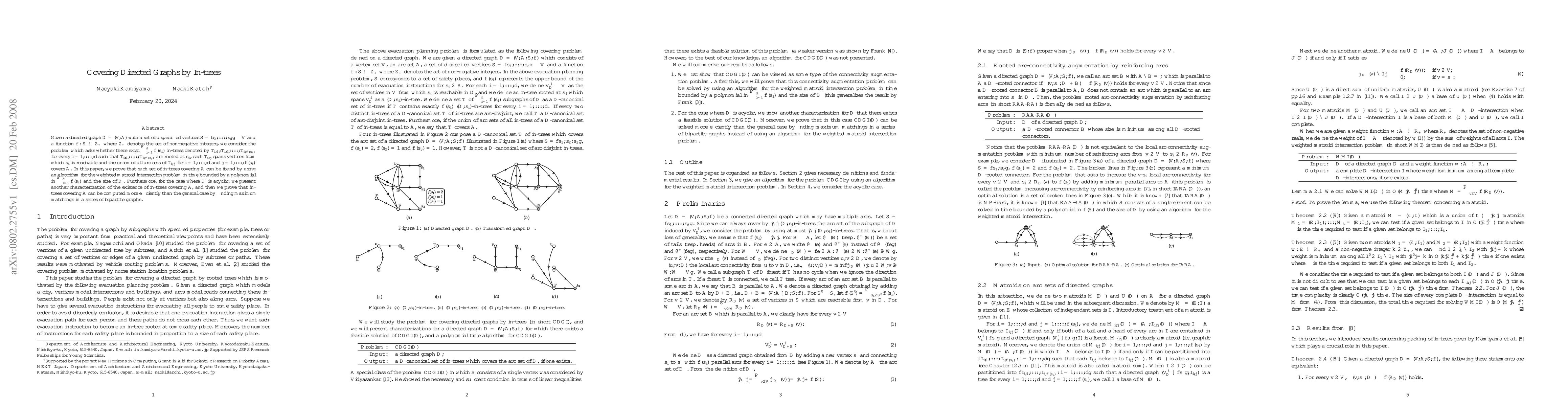 The paper introduces a problem of covering directed graphs with in-trees, which can be solved efficiently using an algorithm for the weighted matroid intersection problem. In the acyclic case, an alternative characterization is presented.