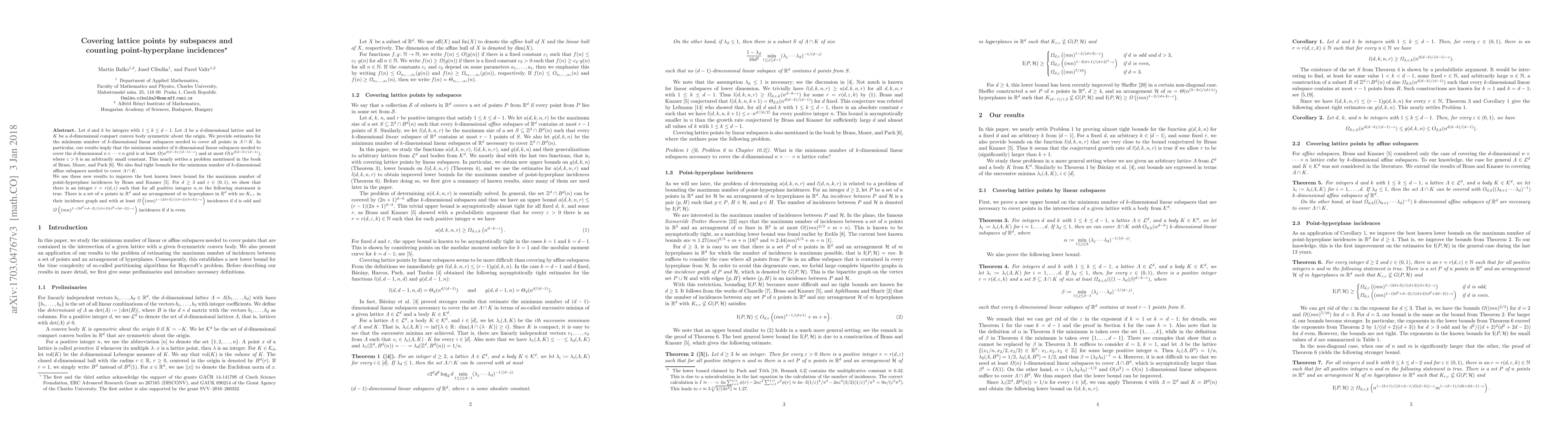 Let $d$ and $k$ be integers with $1 \leq k \leq d-1$. Let $\Lambda$ be a $d$-dimensional lattice and let $K$ be a $d$-dimensional compact convex body symmetric about the origin. We provide estimates for the minimum number of $k$-dimensional linear subspaces needed to cover all points in $\Lambda \cap K$. In particular, our results imply that the minimum number of $k$-dimensional linear subspaces needed to cover the $d$-dimensional $n \times \cdots \times n$ grid is at least $\Omega(n^{d(d-k)/(d-1)-\varepsilon})$ and at most $O(n^{d(d-k)/(d-1)})$, where $\varepsilon>0$ is an arbitrarily small constant. This nearly settles a problem mentioned in the book of Brass, Moser, and Pach. We also find tight bounds for the minimum number of $k$-dimensional affine subspaces needed to cover $\Lambda \cap K$. We use these new results to improve the best known lower bound for the maximum number of point-hyperplane incidences by Brass and Knauer. For $d \geq 3$ and $\varepsilon \in (0,1)$, we show that there is an integer $r=r(d,\varepsilon)$ such that for all positive integers $n,m$ the following statement is true. There is a set of $n$ points in $\mathbb{R}^d$ and an arrangement of $m$ hyperplanes in $\mathbb{R}^d$ with no $K_{r,r}$ in their incidence graph and with at least $\Omega\left((mn)^{1-(2d+3)/((d+2)(d+3)) - \varepsilon}\right)$ incidences if $d$ is odd and $\Omega\left((mn)^{1-(2d^2+d-2)/((d+2)(d^2+2d-2)) -\varepsilon}\right)$ incidences if $d$ is even.