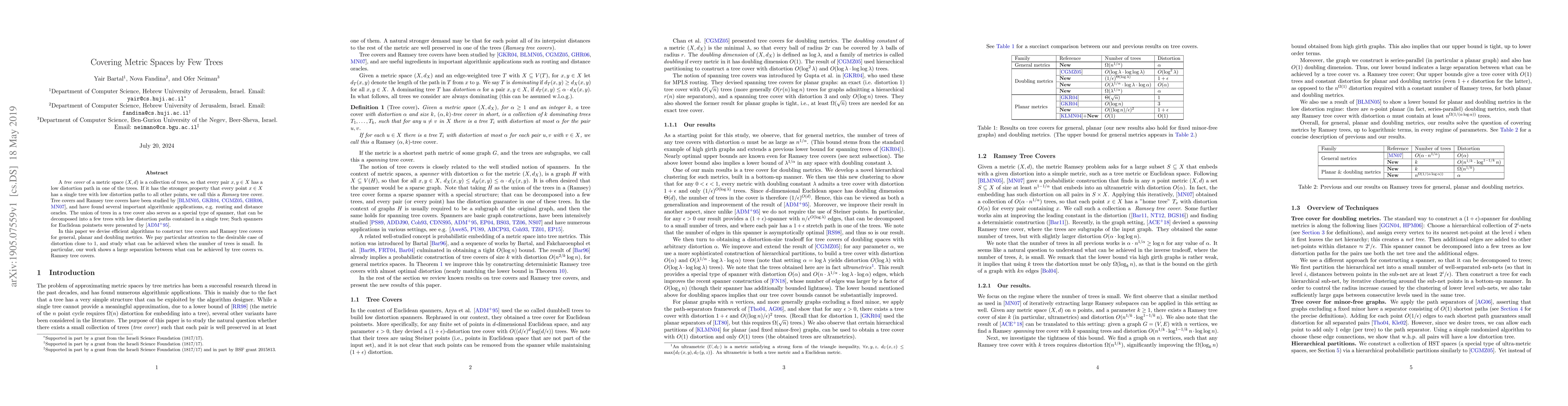 A {\em tree cover} of a metric space $(X,d)$ is a collection of trees, so that every pair $x,y\in X$ has a low distortion path in one of the trees. If it has the stronger property that every point $x\in X$ has a single tree with low distortion paths to all other points, we call this a {\em Ramsey} tree cover. Tree covers and Ramsey tree covers have been studied by \cite{BLMN03,GKR04,CGMZ05,GHR06,MN07}, and have found several important algorithmic applications, e.g. routing and distance oracles. The union of trees in a tree cover also serves as a special type of spanner, that can be decomposed into a few trees with low distortion paths contained in a single tree; Such spanners for Euclidean pointsets were presented by \cite{ADMSS95}. In this paper we devise efficient algorithms to construct tree covers and Ramsey tree covers for general, planar and doubling metrics. We pay particular attention to the desirable case of distortion close to 1, and study what can be achieved when the number of trees is small. In particular, our work shows a large separation between what can be achieved by tree covers vs. Ramsey tree covers.