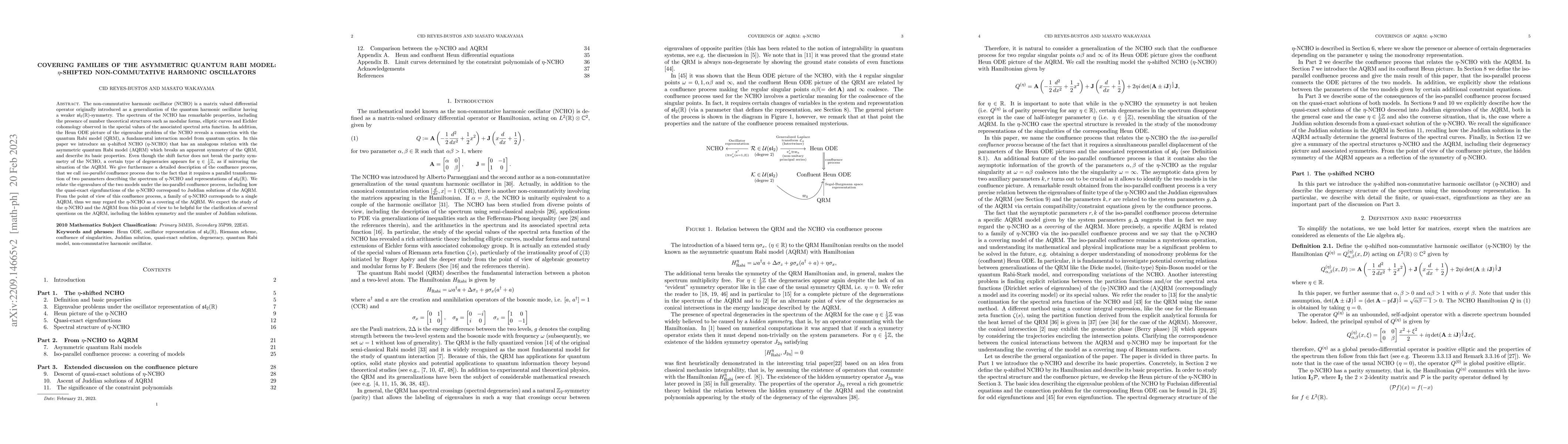 The non-commutative harmonic oscillator (NCHO) is a matrix valued differential operator originally introduced as a generalization of the quantum harmonic oscillator having a weaker $\mathfrak{sl}_2(\mathbb{R})$-symmetry. The spectrum of the NCHO has remarkable properties, including the presence of number theoretical structures such as modular forms, elliptic curves and Eichler cohomology observed in the special values of the associated spectral zeta function. In addition, the Heun ODE picture of the eigenvalue problem of the NCHO reveals a connection with the quantum Rabi model (QRM), a fundamental interaction model from quantum optics. In this paper we introduce an $\eta$-shifted NCHO ($\eta$-NCHO) that has an analogous relation with the asymmetric quantum Rabi model (AQRM) and describe its basic properties. Even though the shift factor does not break the parity symmetry of the NCHO, a certain type of degeneracies appears for $\eta \in \frac12 \mathbb{Z}$, as if mirroring the situation of the AQRM. We give furthermore a detailed description of the confluence process, that we call iso-parallel confluence process due to the fact that it requires a parallel transformation of two parameters describing the spectrum of $\eta$-NCHO and representations of $\mathfrak{sl}_2(\mathbb{R})$. We relate the eigenvalues of the two models under the iso-parallel confluence process, including how the quasi-exact eigenfunctions of the $\eta$-NCHO correspond to Juddian solutions of the AQRM. From the point of view of this confluence process, a family of $\eta$-NCHO corresponds to a single AQRM, thus we may regard the $\eta$-NCHO as a covering of the AQRM. We expect the study of the $\eta$-NCHO and the AQRM from this point of view to be helpful for the clarification of several questions on the AQRM, including the hidden symmetry and the number of Juddian solutions.