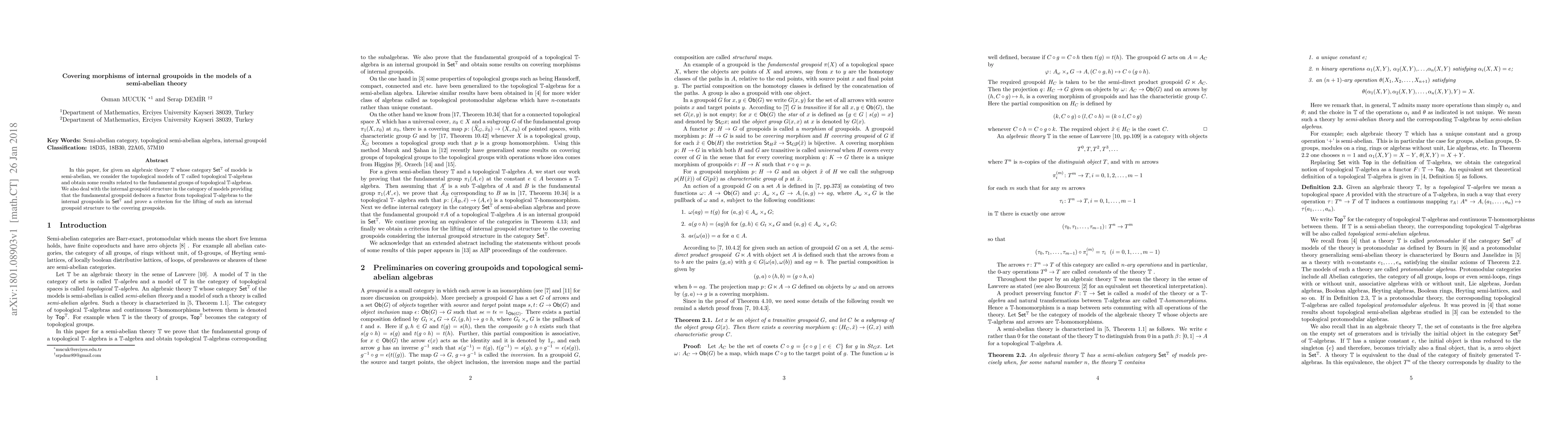 In this paper, for given an algebraic theory $T$ whose category $C$ of models is semi-abelian, we consider the topological models of $T$ called topological $T$-algebras and obtain some results related to the fundamental groups of topological $T$-algebras. We also deal with the internal groupoid structure in the category of models providing that the fundamental groupoid deduces a functor from topological $T$-algebras to the internal groupoids in $C$ and prove a criterion for the lifting of such an internal groupoid structure to the covering groupoids.