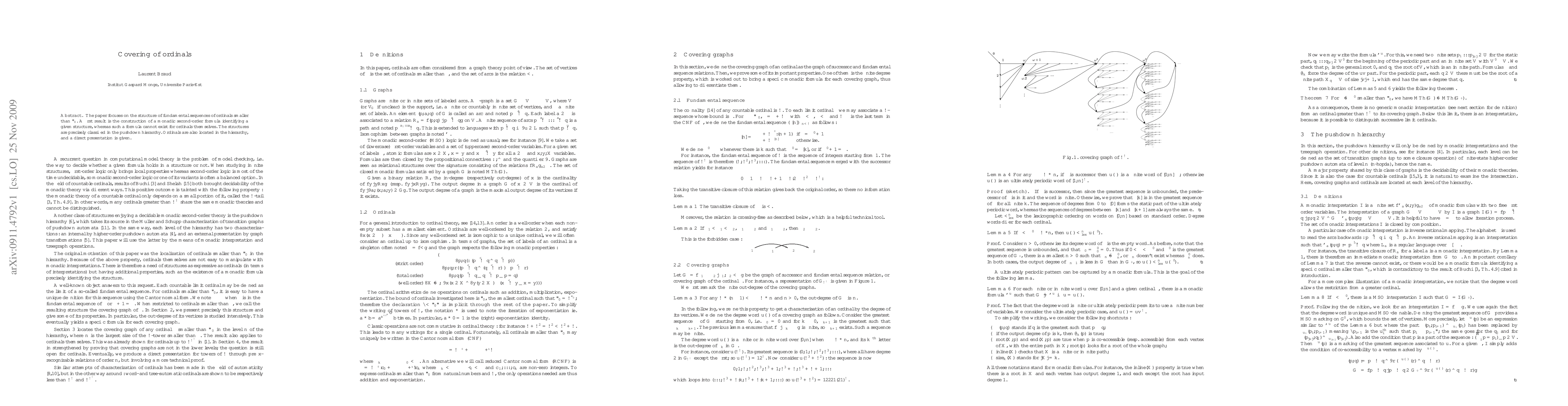 The paper constructs monadic second-order formulas to identify structures of fundamental sequences of ordinals below $\epsilon_0$, classifying them in the pushdown hierarchy, while noting that no such formula exists for ordinals themselves. It also provides a direct presentation of these ordinals within the hierarchy.