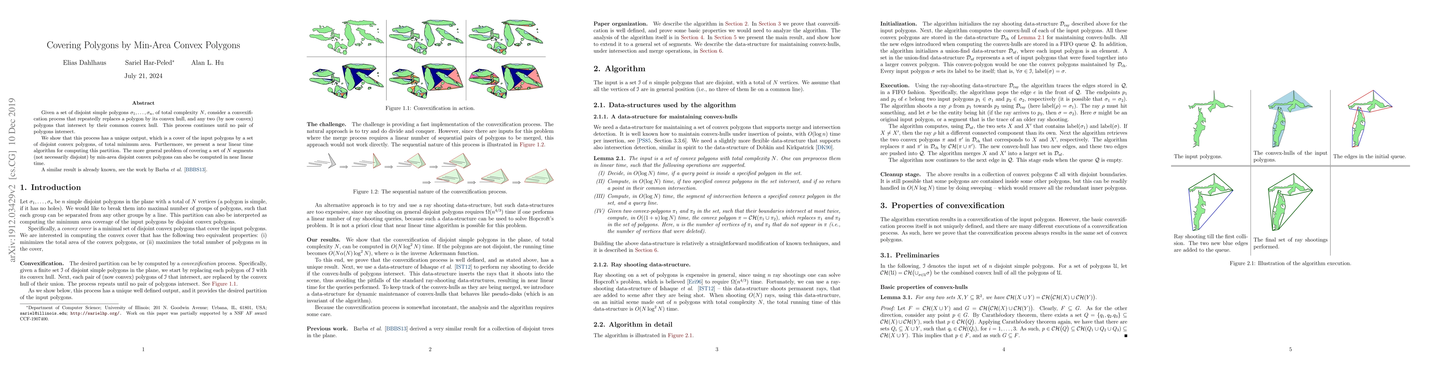 Given a set of disjoint simple polygons $\sigma_1, \ldots, \sigma_n$, of total complexity $N$, consider a convexification process that repeatedly replaces a polygon by its convex hull, and any two (by now convex) polygons that intersect by their common convex hull. This process continues until no pair of polygons intersect. We show that this process has a unique output, which is a cover of the input polygons by a set of disjoint convex polygons, of total minimum area. Furthermore, we present a near linear time algorithm for computing this partition. The more general problem of covering a set of $N$ segments (not necessarily disjoint) by min-area disjoint convex polygons can also be computed in near linear time. A similar result is already known, see the work by Barba et al. [BBB+13].