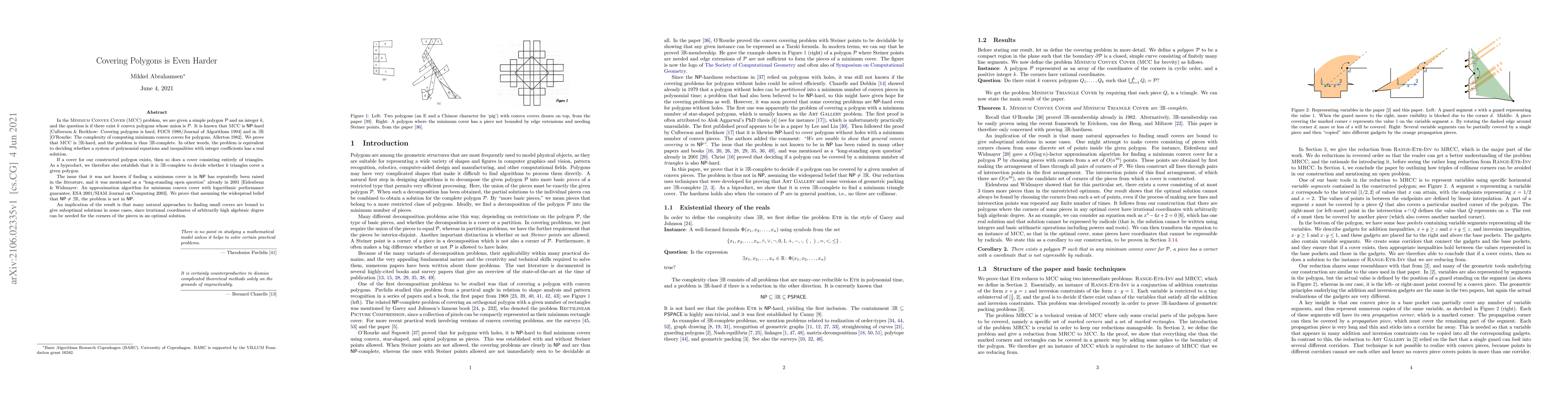 In the MINIMUM CONVEX COVER (MCC) problem, we are given a simple polygon $\mathcal P$ and an integer $k$, and the question is if there exist $k$ convex polygons whose union is $\mathcal P$. It is known that MCC is $\mathsf{NP}$-hard [Culberson & Reckhow: Covering polygons is hard, FOCS 1988/Journal of Algorithms 1994] and in $\exists\mathbb{R}$ [O'Rourke: The complexity of computing minimum convex covers for polygons, Allerton 1982]. We prove that MCC is $\exists\mathbb{R}$-hard, and the problem is thus $\exists\mathbb{R}$-complete. In other words, the problem is equivalent to deciding whether a system of polynomial equations and inequalities with integer coefficients has a real solution. If a cover for our constructed polygon exists, then so does a cover consisting entirely of triangles. As a byproduct, we therefore also establish that it is $\exists\mathbb{R}$-complete to decide whether $k$ triangles cover a given polygon. The issue that it was not known if finding a minimum cover is in $\mathsf{NP}$ has repeatedly been raised in the literature, and it was mentioned as a "long-standing open question" already in 2001 [Eidenbenz & Widmayer: An approximation algorithm for minimum convex cover with logarithmic performance guarantee, ESA 2001/SIAM Journal on Computing 2003]. We prove that assuming the widespread belief that $\mathsf{NP}\neq\exists\mathbb{R}$, the problem is not in $\mathsf{NP}$. An implication of the result is that many natural approaches to finding small covers are bound to give suboptimal solutions in some cases, since irrational coordinates of arbitrarily high algebraic degree can be needed for the corners of the pieces in an optimal solution.
