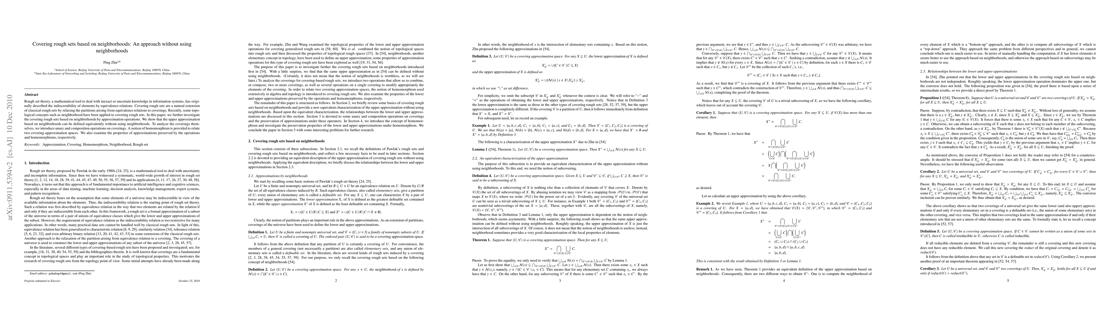 This paper explores covering rough sets, extending classical rough sets through coverings instead of partitions. It demonstrates that neighborhood-based upper approximations can be defined without neighborhoods, introduces operations on coverings, and examines properties preserved under these operations and homomorphisms.
