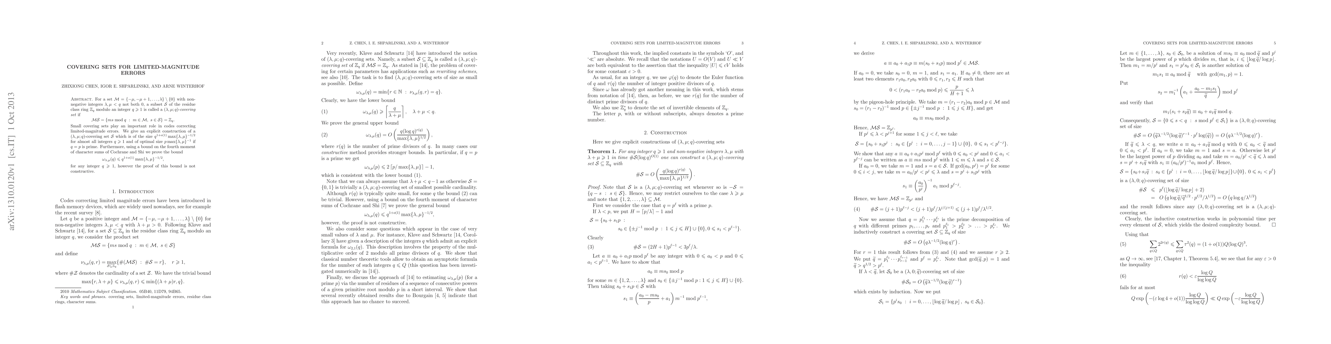 This paper constructs a $(\lambda,\mu;q)$-covering set of size $q^{1 + o(1)}\max\{\lambda,\mu\}^{-1/2}$ for almost all integers $q\ge 1$, and of optimal size $p\max\{\lambda,\mu\}^{-1}$ when $q=p$ is prime. It also provides a non-constructive bound on the covering set size using character sums.