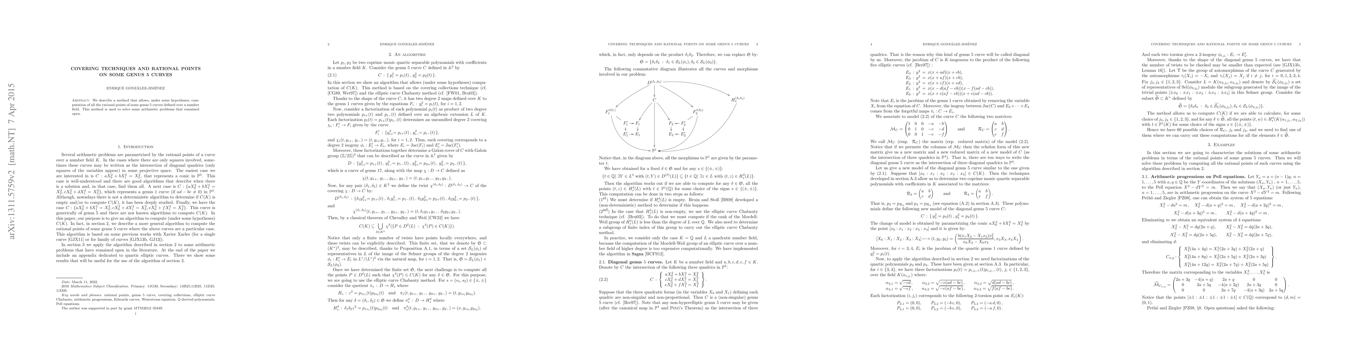 Summary: This paper presents a novel covering technique to compute rational points on certain genus 5 curves over number fields, successfully addressing previously unresolved arithmetic problems.