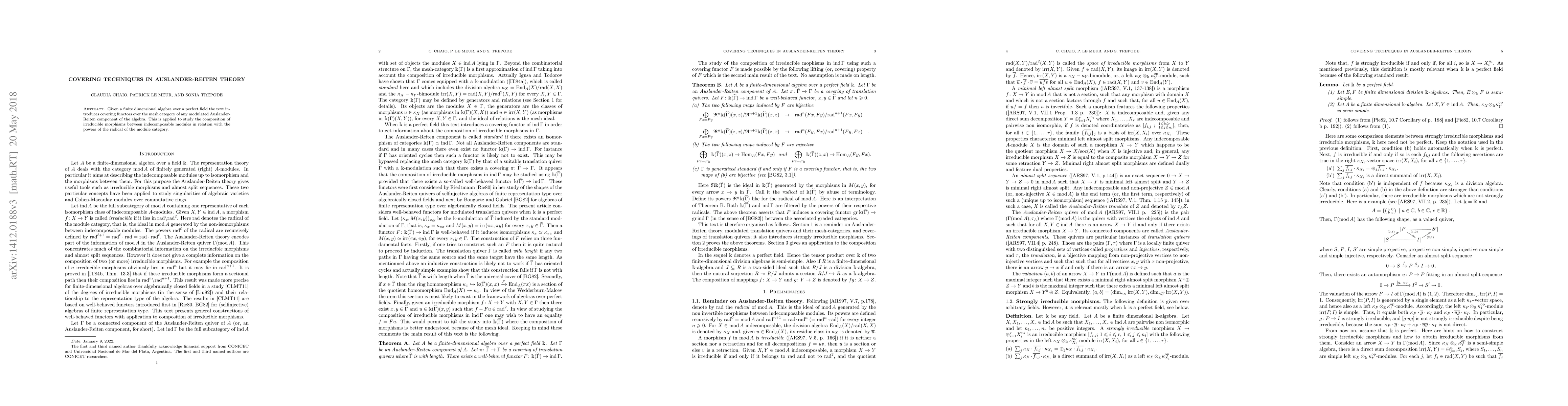 Given a finite dimensional algebra over a perfect field the text introduces covering functors over the mesh category of any modulated Auslander-Reiten component of the algebra. This is applied to study the composition of irreducible morphisms between indecomposable modules in relation with the powers of the radical of the module category.