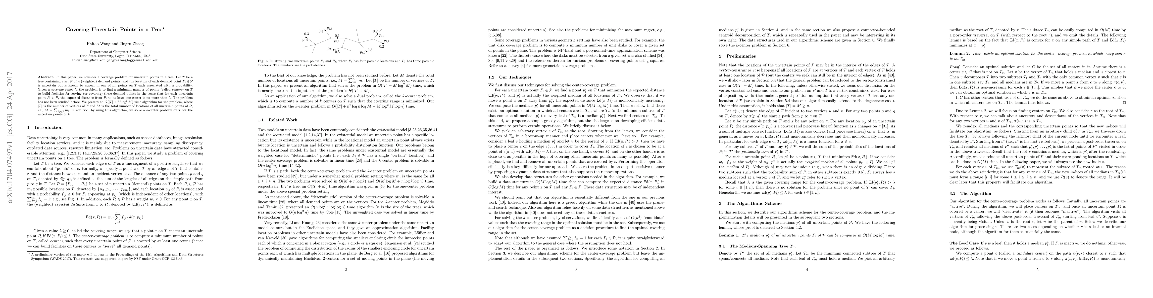 This paper addresses a novel coverage problem for uncertain points in a tree, aiming to determine the minimum number of facilities to cover these points within a specified distance. An O(|T|+M\log^2 M) time algorithm is presented to solve this problem, where M is the total number of possible locations for the uncertain points.