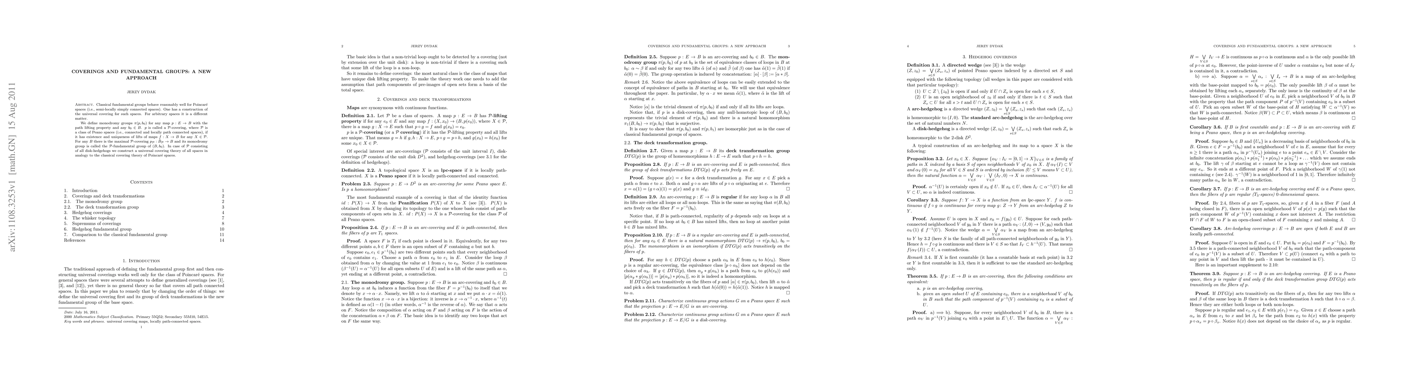 The traditional approach of defining the fundamental group first and then constructing universal coverings works well only for the class of Poincar\' e spaces. For general spaces there were several attempts to define generalized coverings (see \cite{BP3}, \cite{BDLM}, and \cite{FisZas}), yet there is no general theory so far that covers all path connected spaces. In this paper we plan to remedy that by changing the order of things: we define the universal covering first and its group of deck transformations is the new fundamental group of the base space. The basic idea is that a non-trivial loop ought to be detected by a covering (not by extension over the unit disk): a loop is non-trivial if there is a covering such that some lift of the loop is a non-loop. So it remains to define coverings: the most natural class is the class of maps that have unique disk lifting property. To make the theory work one needs to add the assumption that path components of pre-images of open sets form a basis of the total space.
