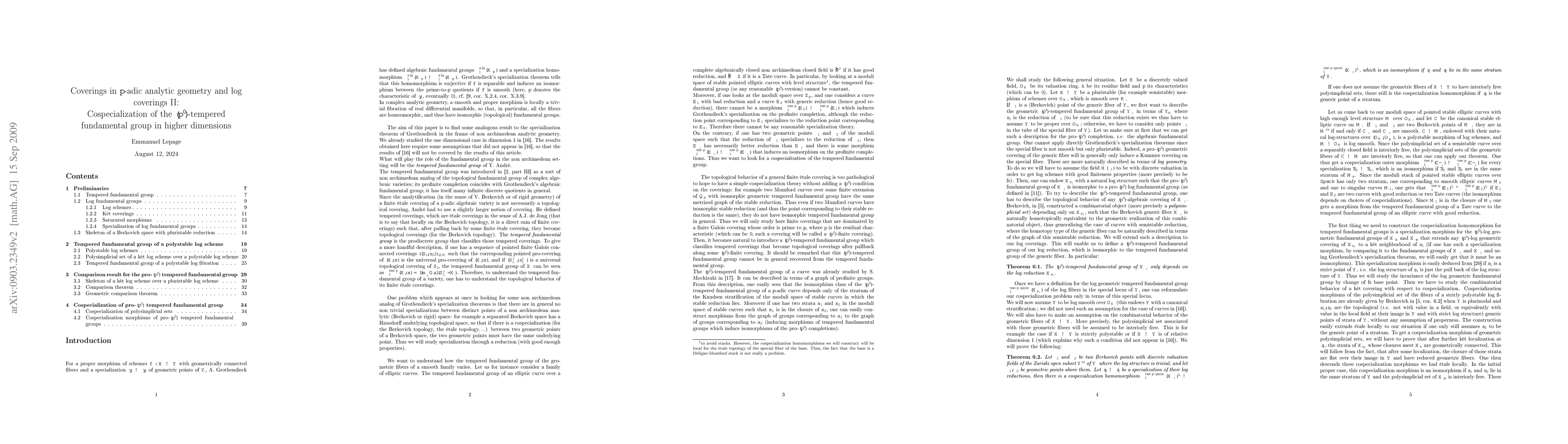 This paper constructs cospecialization homomorphisms between the (p') versions of the tempered fundamental group of the fibers of a smooth morphism with polystable reduction (the tempered fundamental group is a sort of analog of the topological fundamental group of complex algebraic varieties in the p-adic world). We studied the question for families of curves in another paper. To construct them, we will start by describing the pro-(p') tempered fundamental group of a smooth and proper variety with polystable reduction in terms of the reduction endowed with its log structure, thus defining tempered fundamental groups for log polystable varieties.