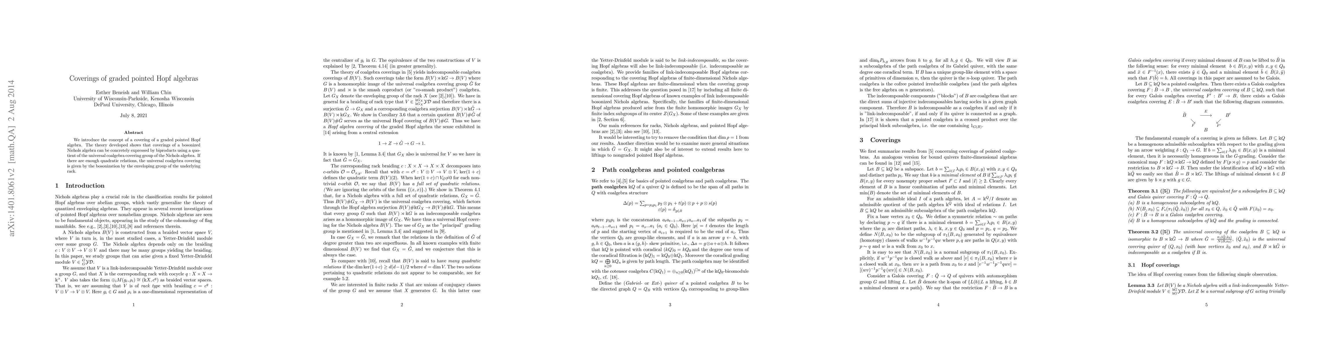 We introduce the concept of a covering of a graded pointed Hopf algebra. The theory developed shows that coverings of a bosonized Nichols algebra can be concretely expressed by biproducts using a quotient of the universal coalgebra covering group of the Nichols algebra. If there are enough quadratic relations, the universal coalgebra covering is given by the bosonization by the enveloping group of the underlying rack.