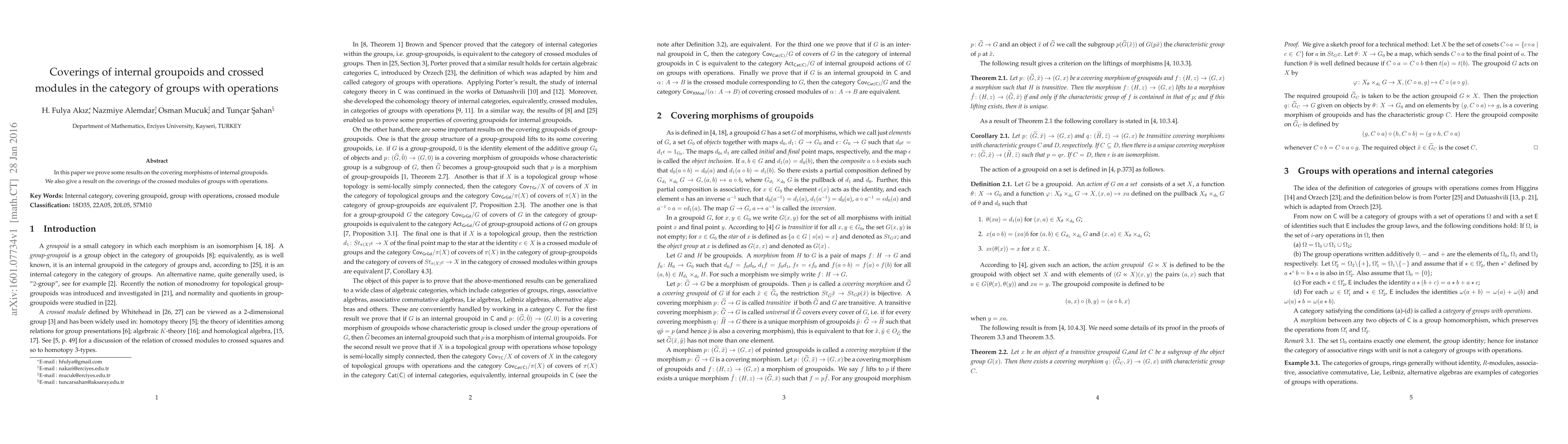 Summary: This paper explores covering morphisms of internal groupoids and provides results on the coverings of crossed modules within the category of groups with operations, establishing significant theoretical connections.