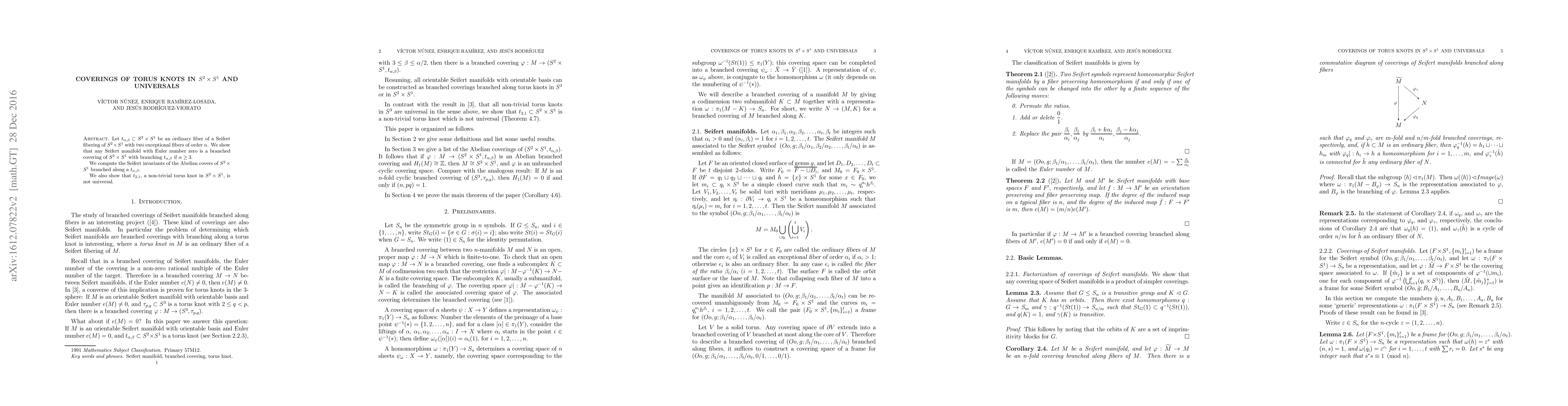 Let $t_{\alpha,\beta}\subset S^2\times S^1$ be an ordinary fiber of a Seifert fibering of $S^2\times S^1$ with two exceptional fibers of order $\alpha$. We show that any Seifert manifold with Euler number zero is a branched covering of $S^2\times S^1$ with branching $t_{\alpha,\beta}$ if $\alpha\geq3$. We compute the Seifert invariants of the Abelian covers of $S^2\times S^1$ branched along a $t_{\alpha,\beta}$. We also show that $t_{2,1}$, a non-trivial torus knot in $S^2\times S^1$, is not universal.