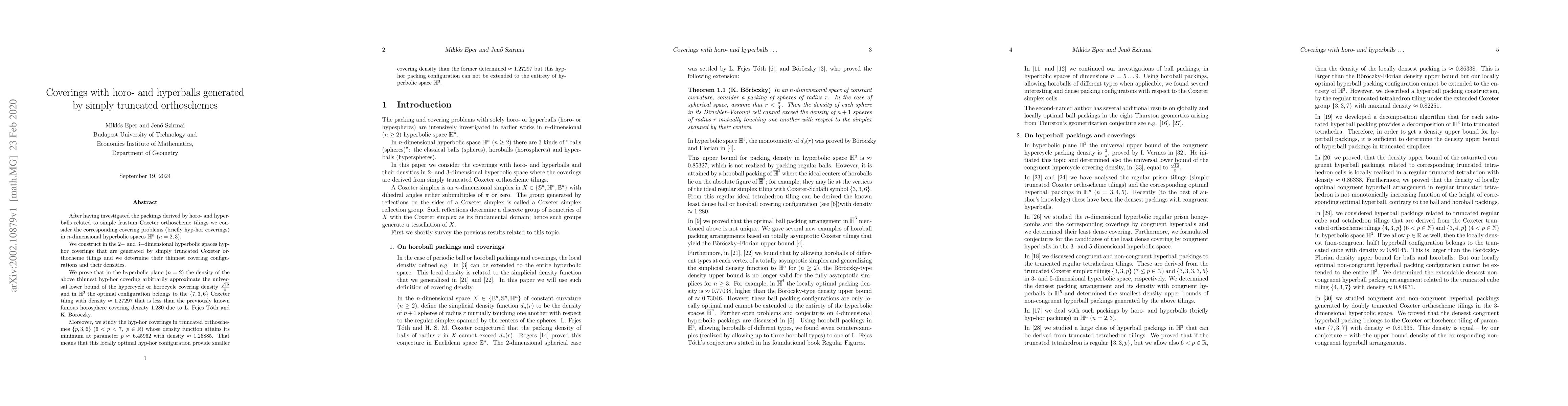 This paper investigates hyperbolic coverings generated by truncated Coxeter orthoschemes in $\mathbb{H}^2$ and $\mathbb{H}^3$. It determines the thinnest configurations and densities for these coverings, showing that in $\mathbb{H}^2$ the density approaches $\frac{\sqrt{12}}{\pi}$, while in $\mathbb{H}^3$ the optimal density is $\approx 1.27297$ for the $\{7,3,6\}$ tiling.