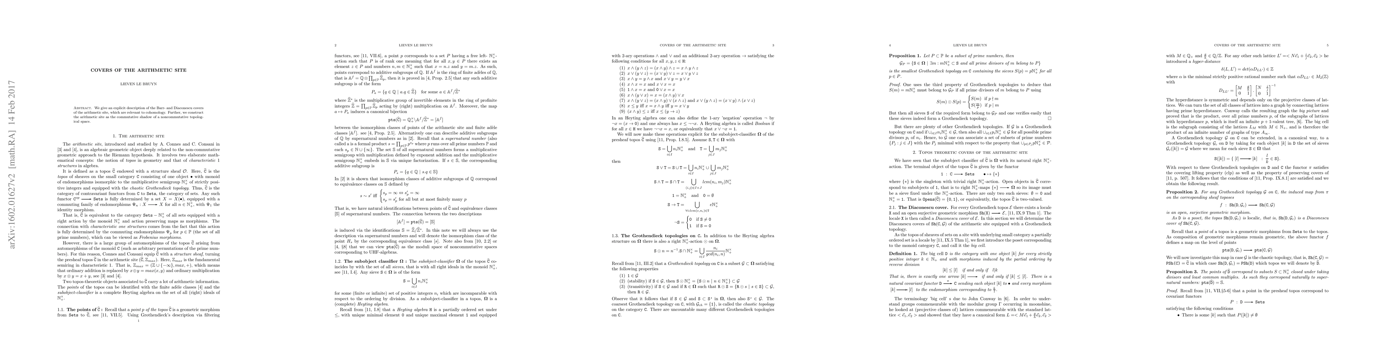 We give an explicit description of the Barr- and Diaconescu covers of the arithmetic site, which are relevant to cohomology. Further, we construct the arithmetic site as the commutative shadow of a non-commutative topological space.