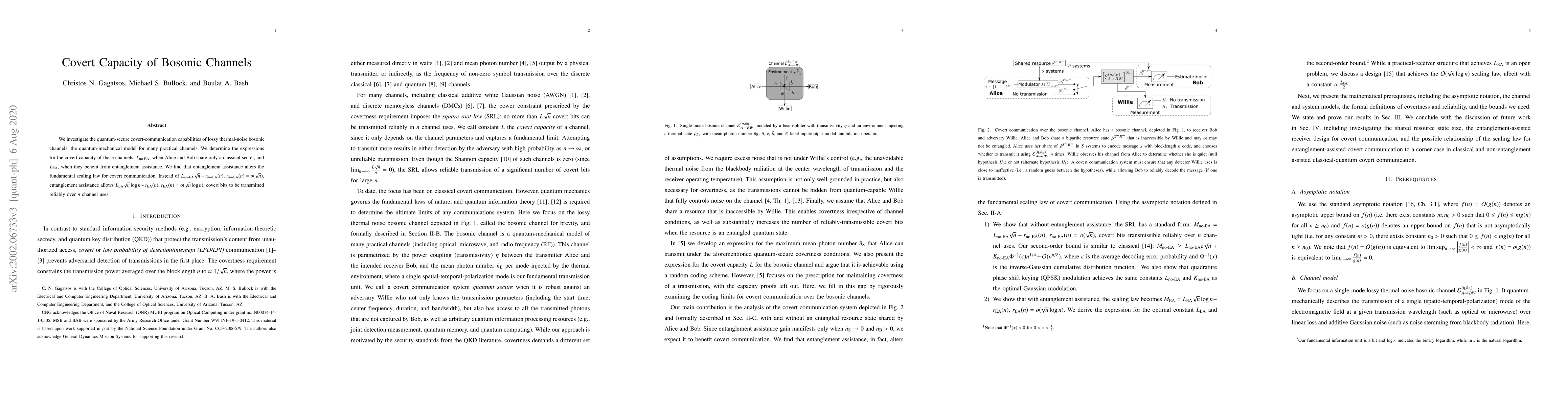 We investigate the quantum-secure covert-communication capabilities of lossy thermal-noise bosonic channels, the quantum-mechanical model for many practical channels. We determine the expressions for the covert capacity of these channels: $L_{\text{no-EA}}$, when Alice and Bob share only a classical secret, and $L_{\text{EA}}$, when they benefit from entanglement assistance. We find that entanglement assistance alters the fundamental scaling law for covert communication. Instead of $L_{\text{no-EA}}\sqrt{n}-r_{\text{no-EA}}(n)$, $r_{\text{no-EA}}(n)=o(\sqrt{n})$, entanglement assistance allows $L_{\text{EA}}\sqrt{n}\log n-r_{\text{EA}}(n)$, $r_{\text{EA}}(n)=o(\sqrt{n}\log n)$, covert bits to be transmitted reliably over $n$ channel uses.