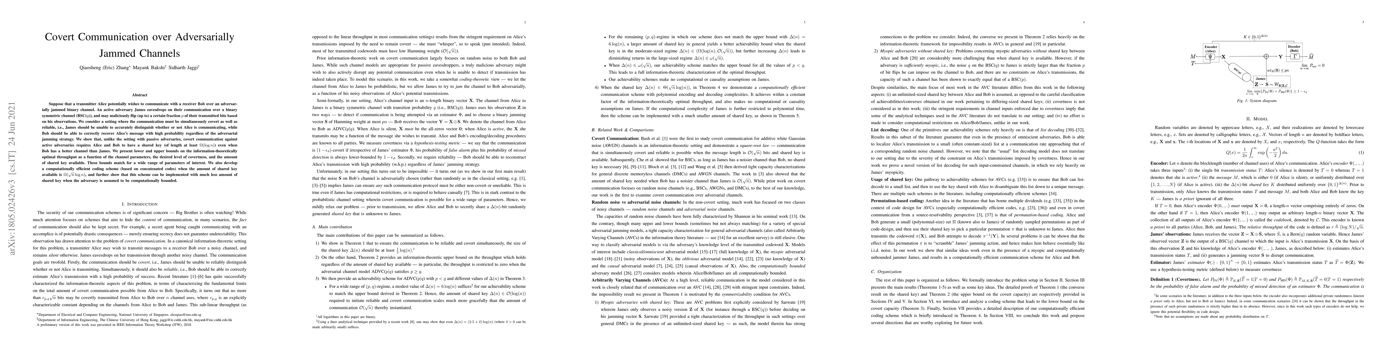 The research employs a model of covert communication over adversarially jammed binary channels, utilizing a combination of information-theoretic analysis and coding scheme development.