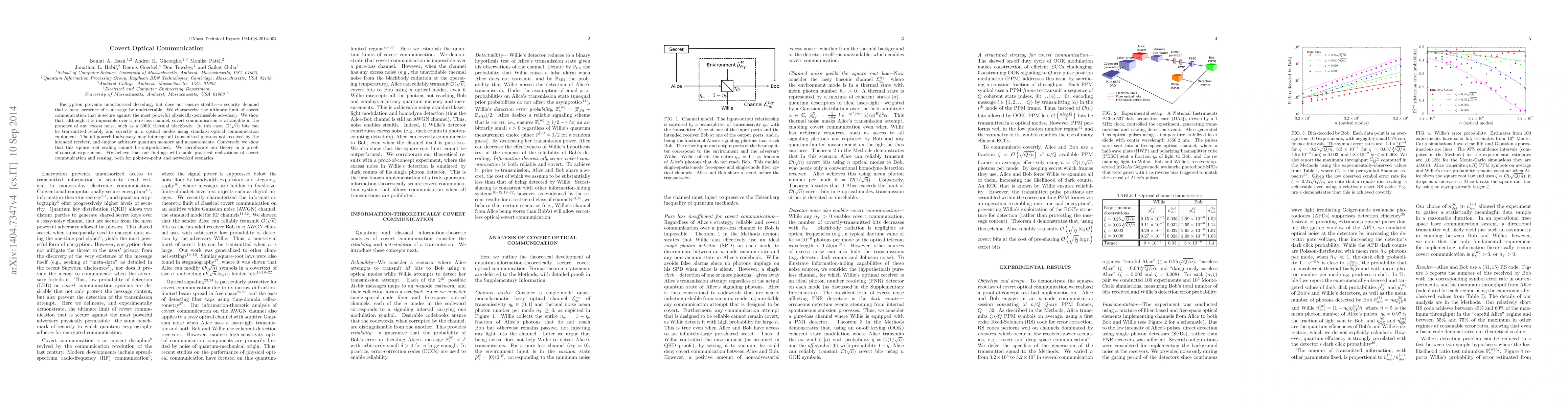 This paper explores the limits of covert optical communication, demonstrating that while it's impossible over pure-loss channels, covert communication is feasible with excess noise, allowing $\mathcal{O}(\sqrt{n})$ bits transmission in $n$ optical modes. The findings are supported by theoretical proofs and a proof-of-concept experiment.