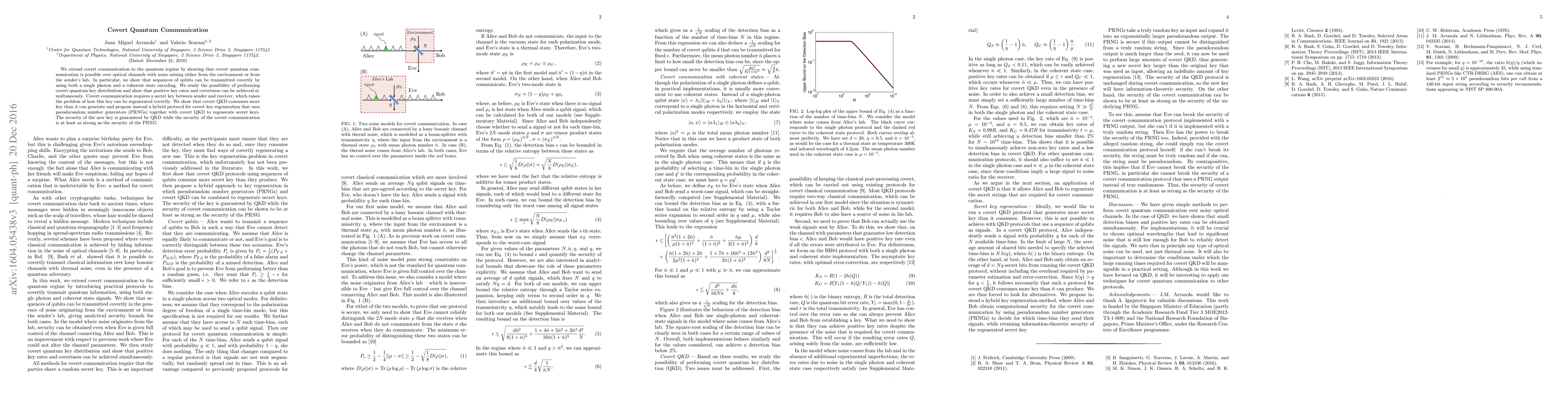 This paper explores covert quantum communication over optical channels, demonstrating the feasibility of transmitting qubits covertly using single photons and coherent states. It introduces a hybrid protocol combining covert quantum key distribution (QKD) and pseudorandom number generators for covert key regeneration, ensuring both security and covertness.